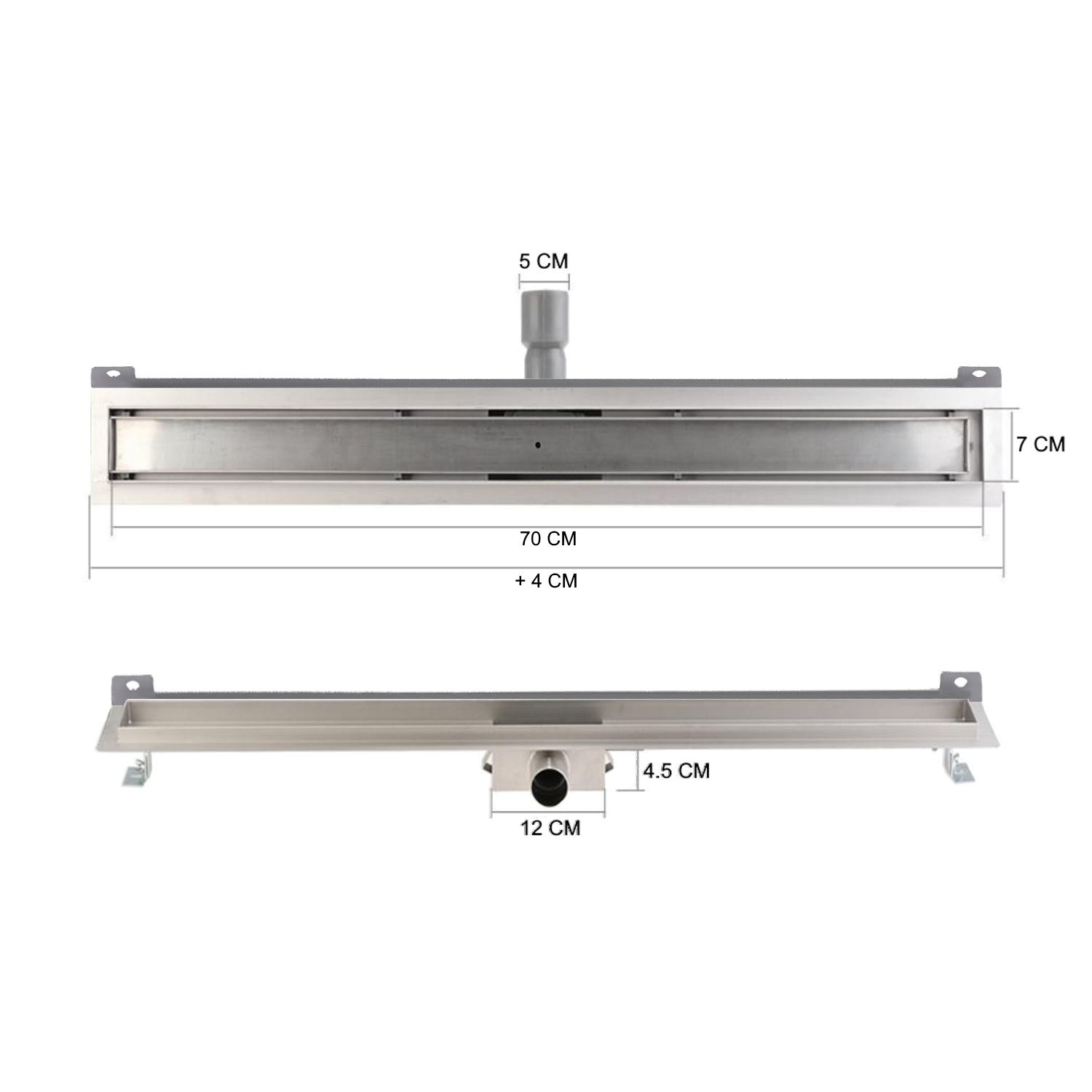 De slanke goot van slecht 7 cm is voorzien van een standaard rooster van 70 cm. In de set zijn verschillende design rooster te kiezen om de douchegoot volledig te laten aan sluiten op uw wensen. De goot is gemaakt van RVS. RVS is een uitstekende keuze voor een douchedrain door zijn vaste harde vorm. Het roest niet en gaat daardoor lang mee.