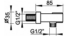 Wandsteun met uitlaat van Hotbath. Dit is een verstelbare wandsteun, vervaardigd uit messing. Dit product kunt u combineren met een van de Hotbath doucheslangen en handdouches.