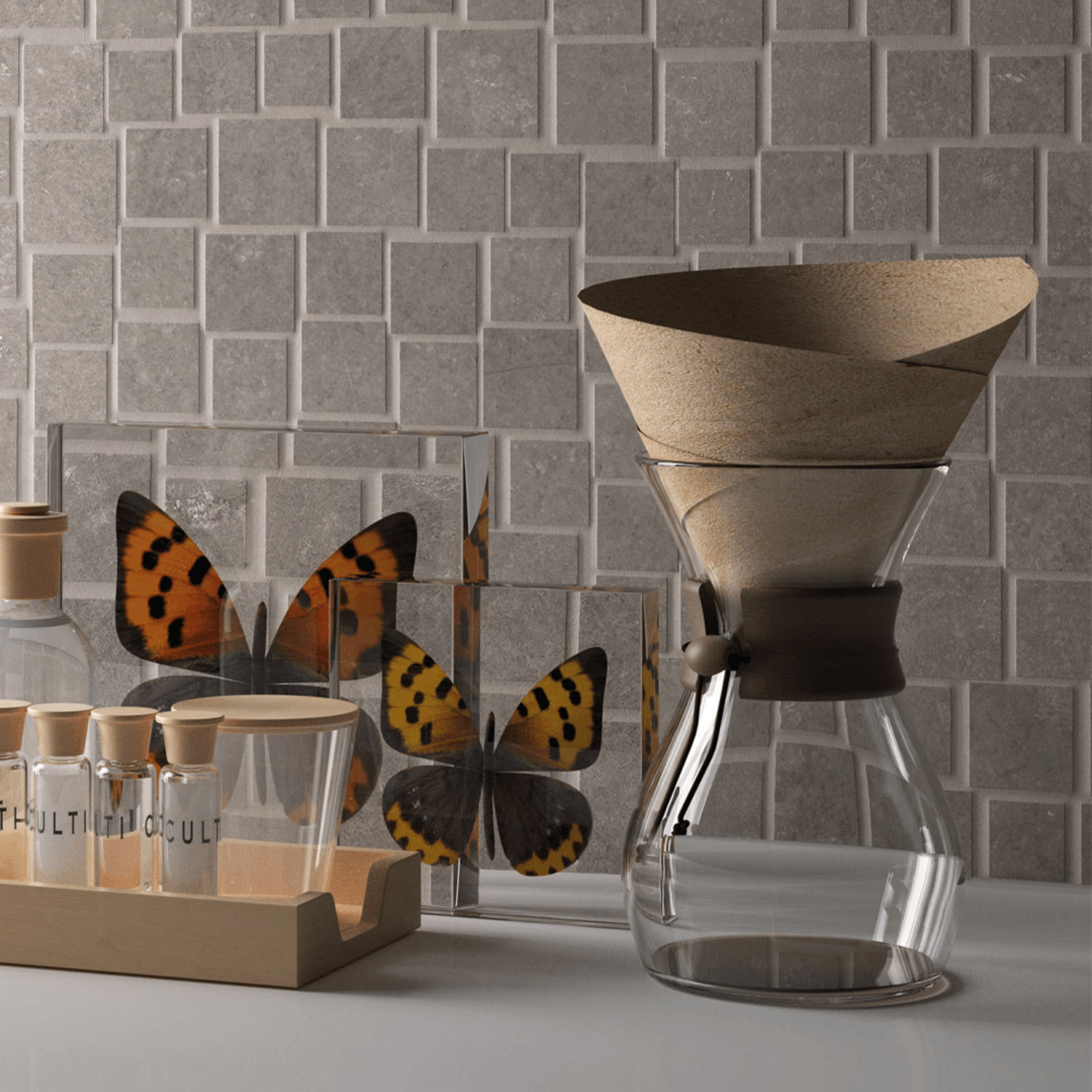 U heeft gekozen voor de stijlvolle mozaïek van Douglas & Jones, deze behoort tot de Fusion serie. De tegels zijn afgewerkt met een natuurlijke grijze kleur, verschillend per tegel. De tegels passen vrijwel bij elke huisstijl. Het geeft een robuuste uitstraling en zo breekt u de kamer op en creëert u een speels effect.