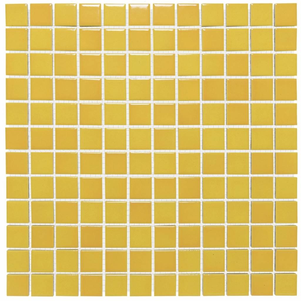 Deze fraaie mozaïektegel van The Mosaic Factory behoort tot de Barcelona-serie. De tegel heeft een afmeting van 30x30cm en is glanzend geglazuurd afgewerkt. De mozaïektegels op de tegelmaat hebben een lengte en breedte van 23 mm, terwijl de voegmaat 2,5 mm bedraagt. De kleur van deze tegel is geel gevlamd.