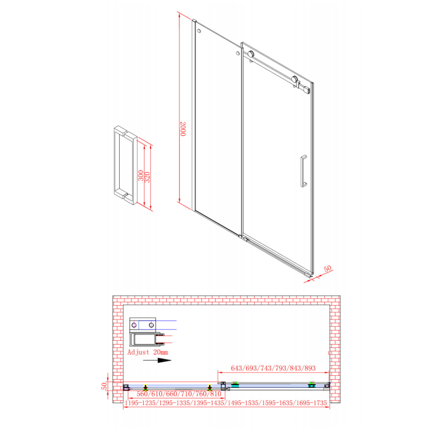 LET OP: Omdat de nisdeur ook op een douchebak te plaatsen is zijn de afmetingen 2 á 3 cm kleiner dan aangegeven op de specificaties