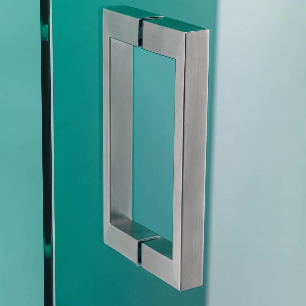 Deze 2 pendeldeuren zijn geschikt voor plaatsing in een nis van 80 cm. De pendeldeuren worden geleverd inclusief scharnieren en deurgrepen. De scharnieren hebben een auto close systeem. Wat deze deuren écht bijzonder maakt, is de matzwarte afwerking. Zo breng je een unieke sfeer in je badkamer. Het veiligheidsglas van maar liefst 8mm is altijd voorzien van een antikalk laag waardoor kalk en viezigheid zich minder snel zal hechten.