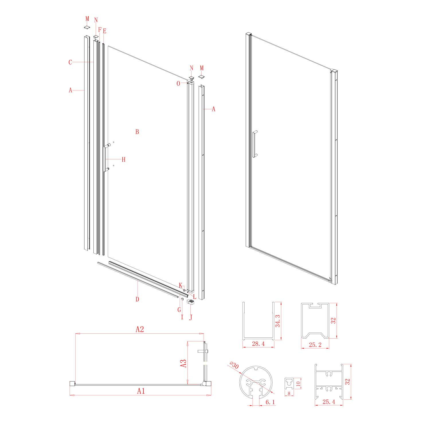 U kunt de douchedeur van 200 cm hoogte plaatsen met een het muurprofiel en stabilisatiestang. De deur is zowel links als rechtsom te plaatsen. Deze nisdeur heeft een minimale maat van 66 cm en is door middel van het profiel uitbreidbaar tot 70 cm.