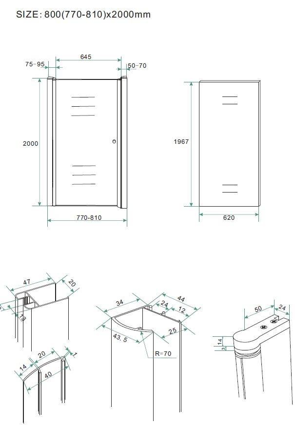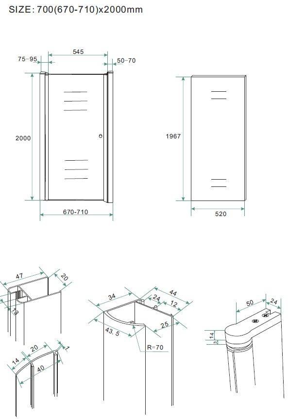 Nisdeur van 60, 70, 80, 90 of 100 cm breed bij 200 cm hoog. Deze nisdeur heeft een mooi aluminium profiel met 8 mm helder veiligheidsglas met anti-kalk coating. Dit product staat garant voor kwaliteit.