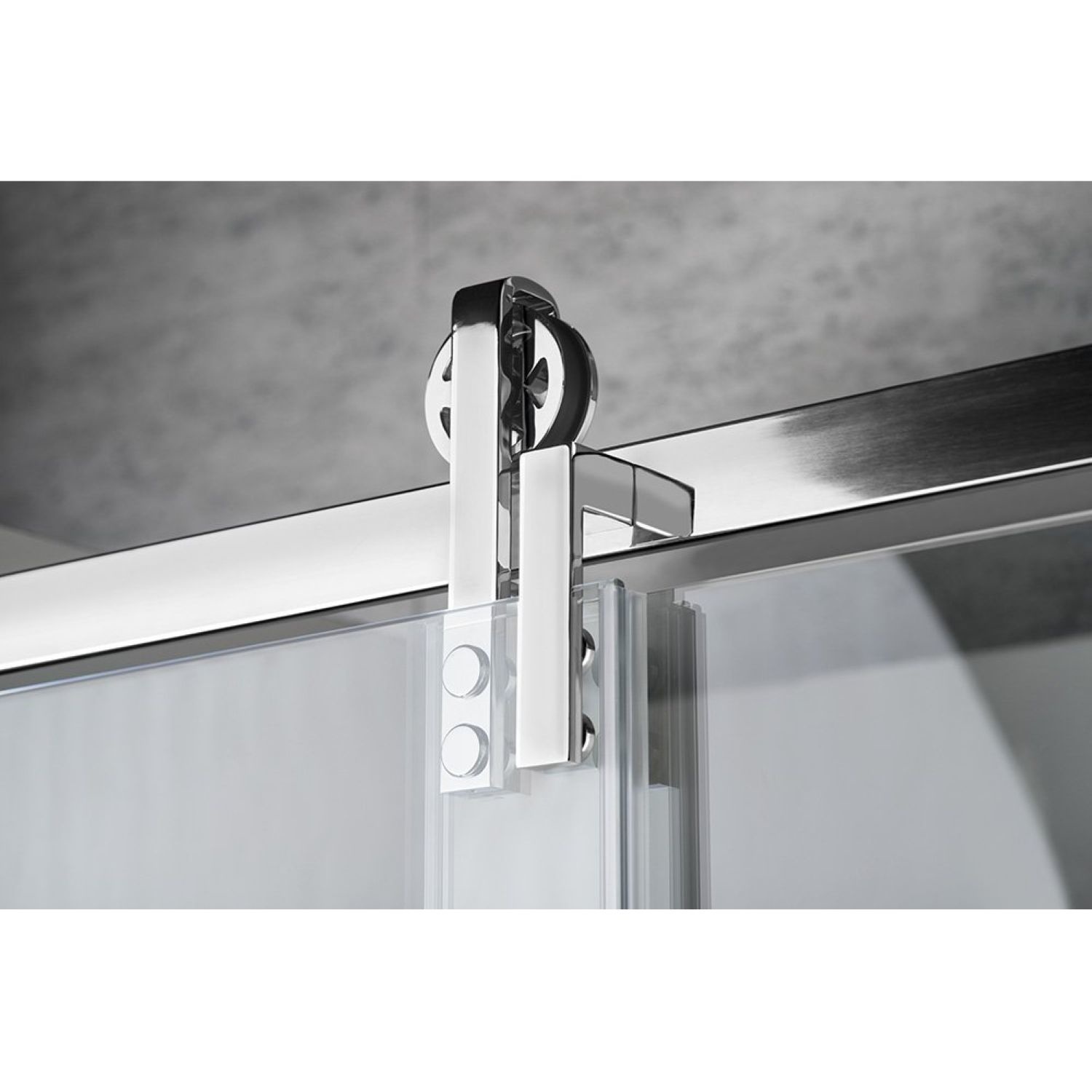 De wielen zijn een onderscheidend kenmerk van het scherm. Ze verbeteren het onderscheidende ontwerp en garanderen tegelijkertijd een perfecte beweging van de deur. De overloopstang is verbonden met het geleidestuk dat de beweging van de deur stuurt. Dit zorg voor een gemakkelijke toegang.