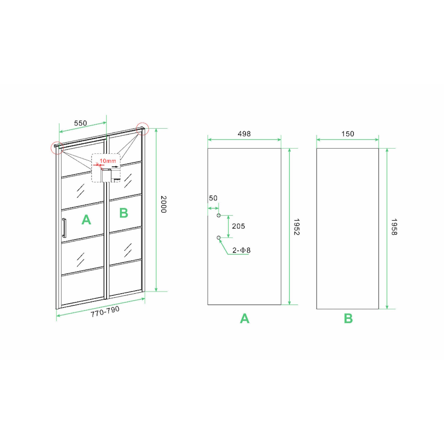De deur zowel links als rechtsom te plaatsen, hierdoor is de wand in elke mogelijkheid toepasbaar.