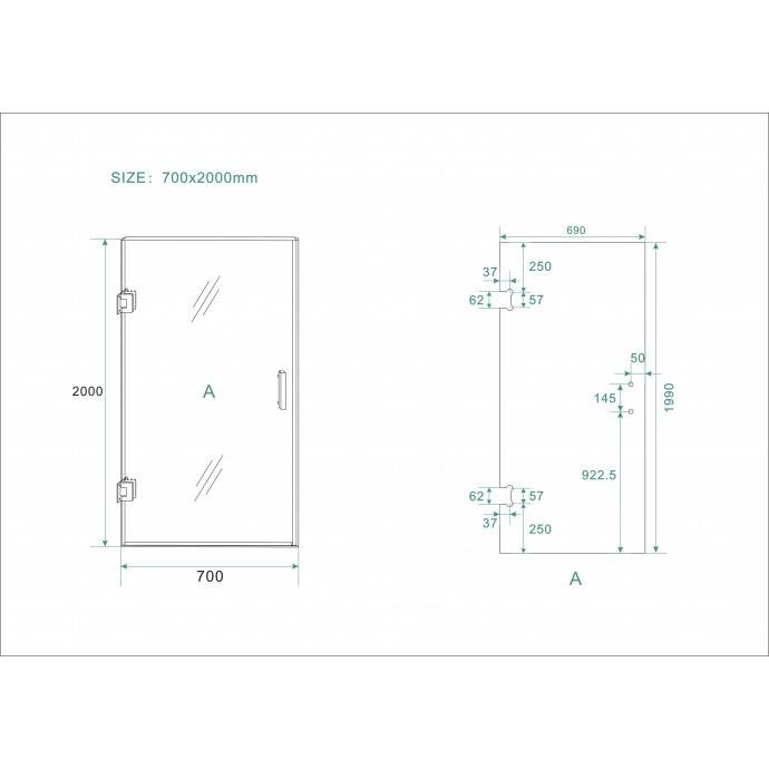 Nisdeur zonder profiel met 8 mm NANO glas, van het merk Aqua Splash. Deze nisdeur beschikt over messing verchroomde scharnieren en is zowel links als rechts draaibaar. Deze nisdeur kunt u zowel op een douchebak of op de vloer plaatsen. Verkrijgbaar in 4 verschillende maten.