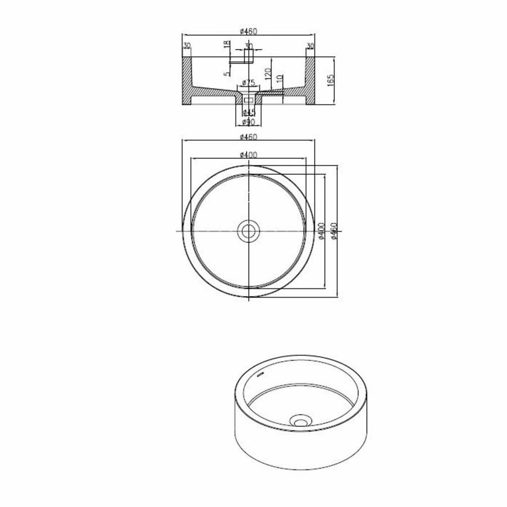 De Waskom Best Design Just Solid Surface Opbouw 46 cm wordt geleverd zonder sifon, afvoerplug en kraan.