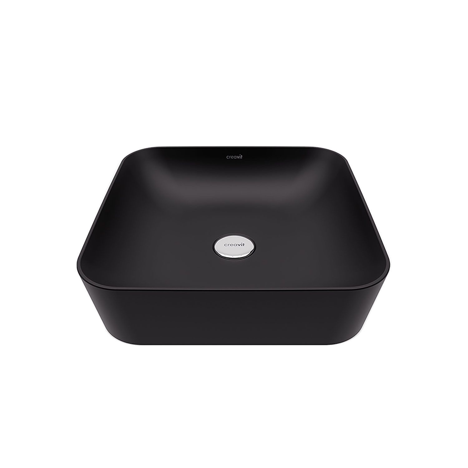 De wastafel van Creavit uit de Juno serie past met zijn afgeronde vormen en ruime afmeting goed in de moderne badkamer. Met een breedte van 40 cm en een diepte van 40 cm biedt de wastafel voldoende ruimte om met gemak uw handen te wassen. Door de wasbak te combineren met een kraan en waste naar keuze creëert u de sfeer die u voor ogen heeft! Combineer de zwarte wastafel bijvoorbeeld met een chrome kraan en waste voor een klassieke look die nooit uit de tijd gaat, of ga juist voor gouden of koperen details voor een meer gewaagde uitstraling.