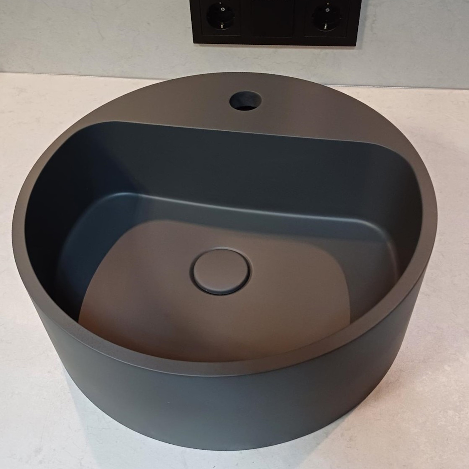 Met de Sanimex Crystal opbouw wastafel haalt u een mooie eyecatcher in huis. Deze wastafel heeft een unieke uitstraling dankzij de halfronde vorm. De wastafel is gemaakt van beton en heeft een grijze kleur in matte afwerking. Het heeft een breedte van 40 centimeter en is 14 centimeter hoog. Dit geeft u voldoende ruimte om uw handen met gemak te wassen. Bovendien zorgt de hoogte ervoor dat het meeste opspattende water netjes in de wasbak blijft. In het verhoogde deel van de wastafel zit een kraangat.