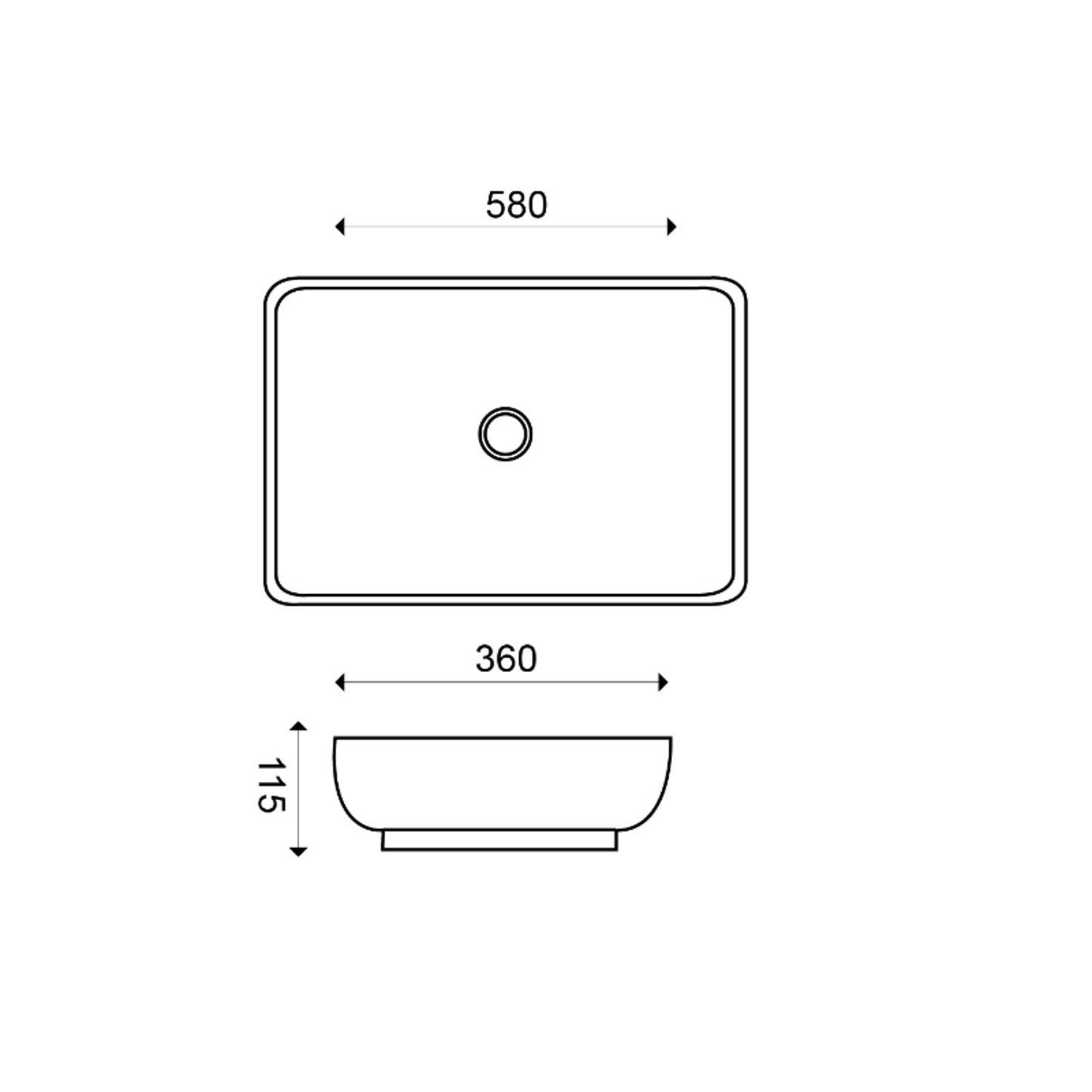 Uit de serie Mark komt deze fraaie mat witte opzetwastafel van BWS. Hij is 58cm breed, 36cm diep en 11,5 cm hoog.