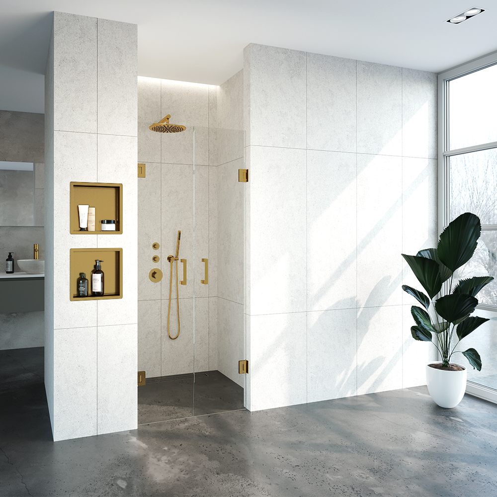 Deze complete pendeldeuren bestaan uit twee draaideuren van 40 cm breed met Goud beslag. Inclusief glasbehandeling en optionele kunststof profielen. De hoogte is 200 cm. Deze pendeldeuren stralen luxe uit door hun design en kleur.