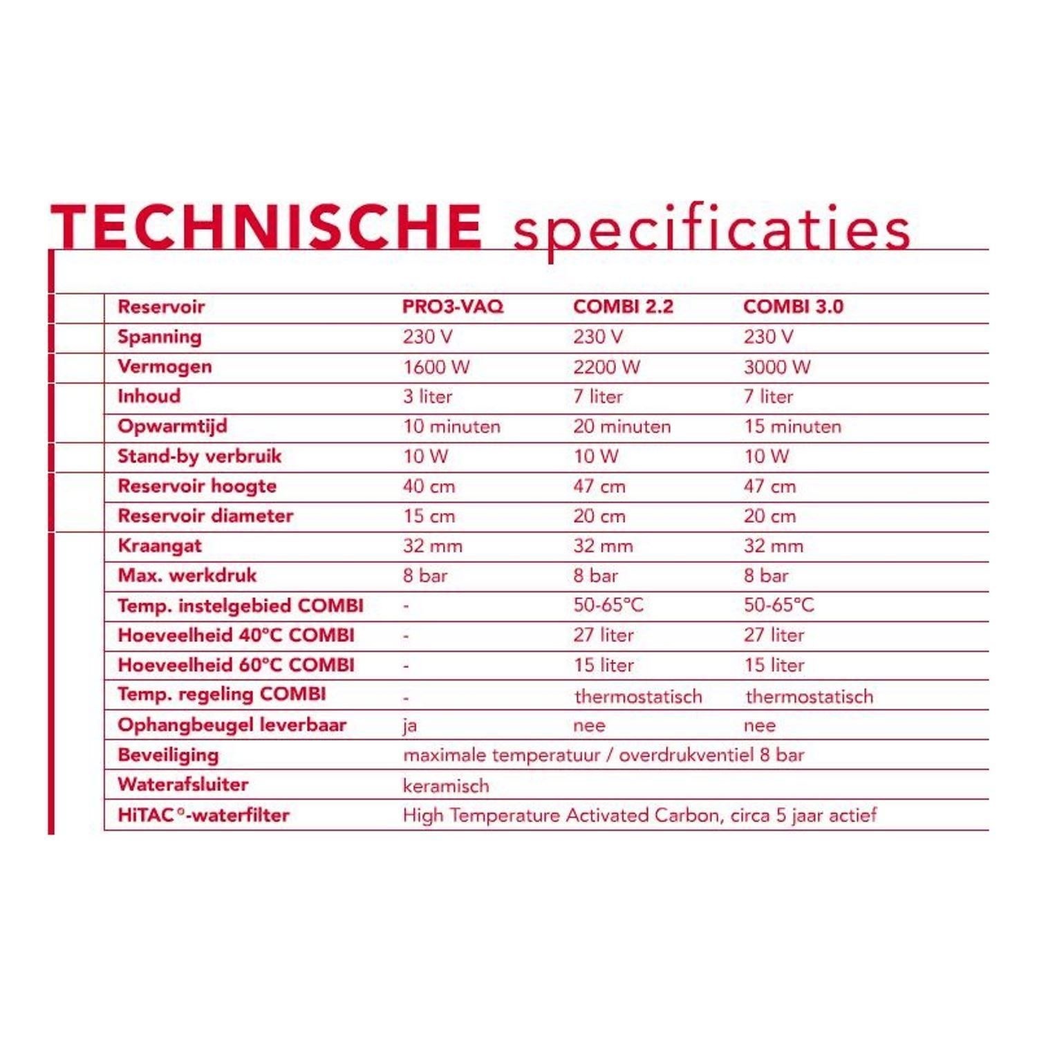 Om direct kokend water te kunnen leveren zodra u de kraan opent, wordt er constant 3 liter water op 100 graden Celsius in een reservoir bewaard. Dit reservoir plaatst u bijvoorbeeld onder uw kraan in een keukenkast. Normaliter kost het erg veel energie om water op 100 graden Celsius te bewaren. Echter door de Quooker ontwikkelde en gepatenteerde hoog vacuümisolatie in combinatie met een warmtestralingsscherm is het apparaat extreem zuinig en compact.