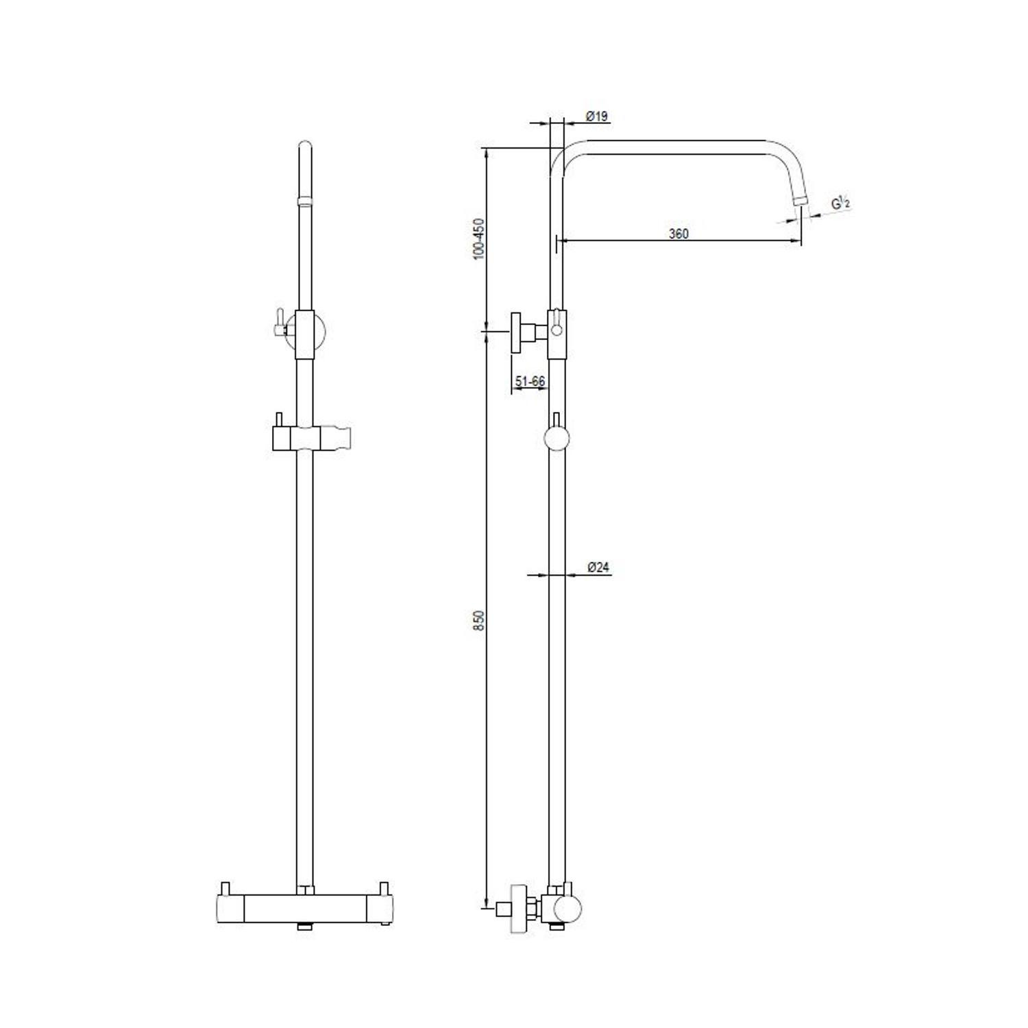 De mat zwarte complete regendouche set is voorzien van een thermostatische mengkraan, douchekop met een doorsnee van 20cm, verstelbare muurbuis, S-koppelingen en rozetten.