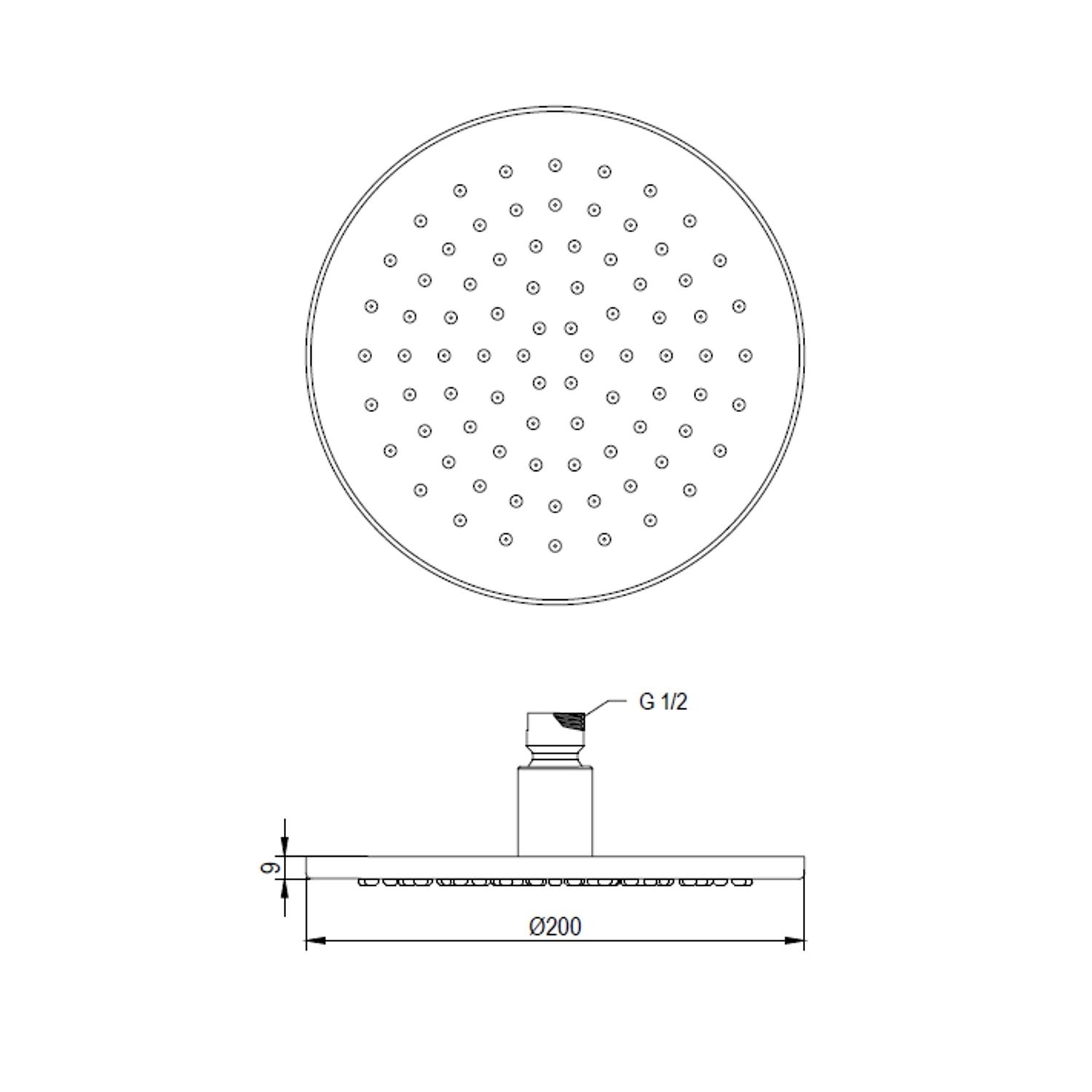 De douchekop is 20 cm en heeft 1 stand. Hij is van RVS is de kleur geborsteld goud.