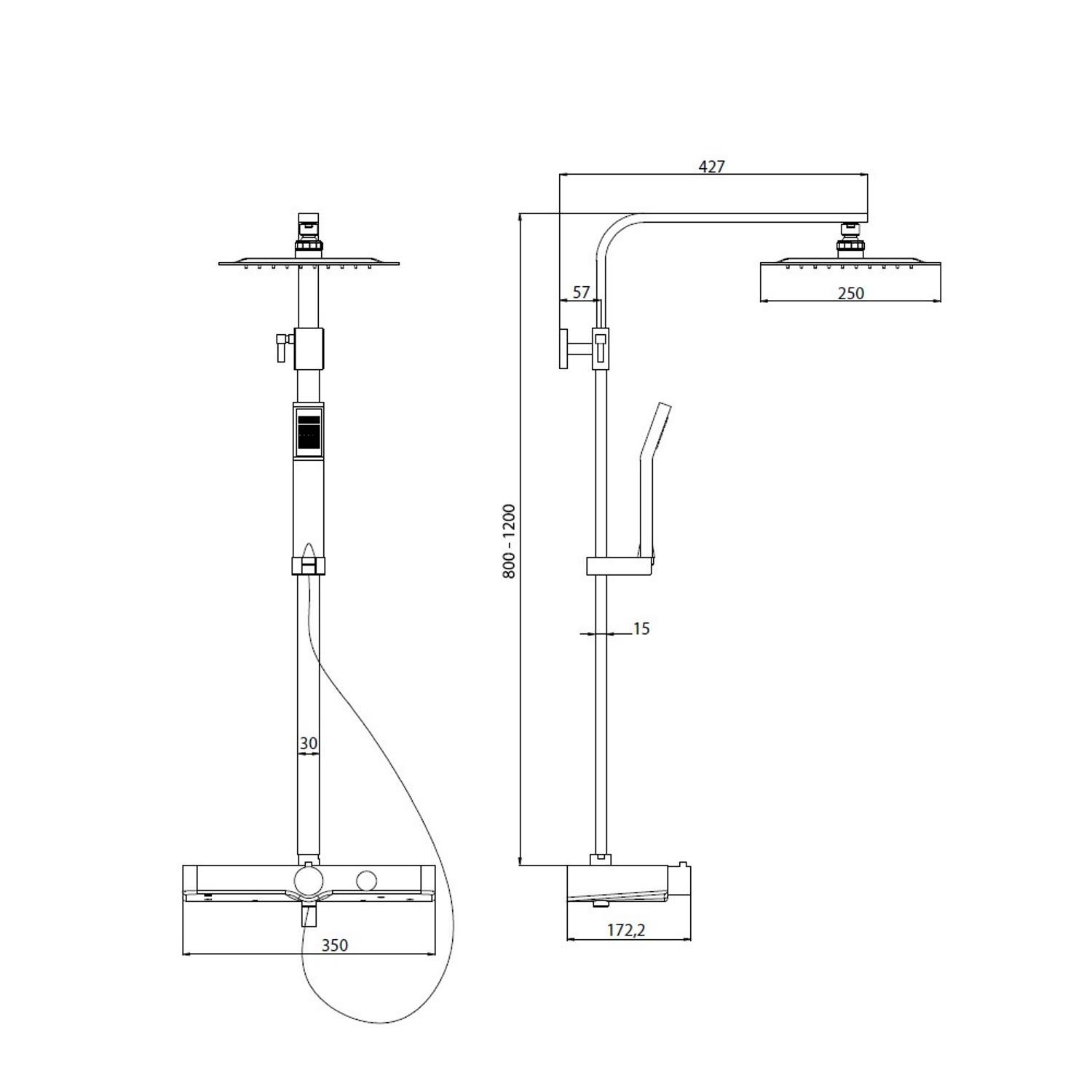 De Ocean regendouche opbouwset met een thermostatische kraan van het merk Schutte heeft een design uitstraling en past daardoor uitstekend in de moderne badkamer. De doucheset bevat een hoofddouche, een flexibele doucheslang, een glijstang met bevestigingsmateriaal, een handdouche en een geïntegreerd glazen planchet voor het opbergen van uw douchegerei. De handdouche is uitgerust met drie standen. Verder bevat de kraan een veiligheidsstop op 38 graden.