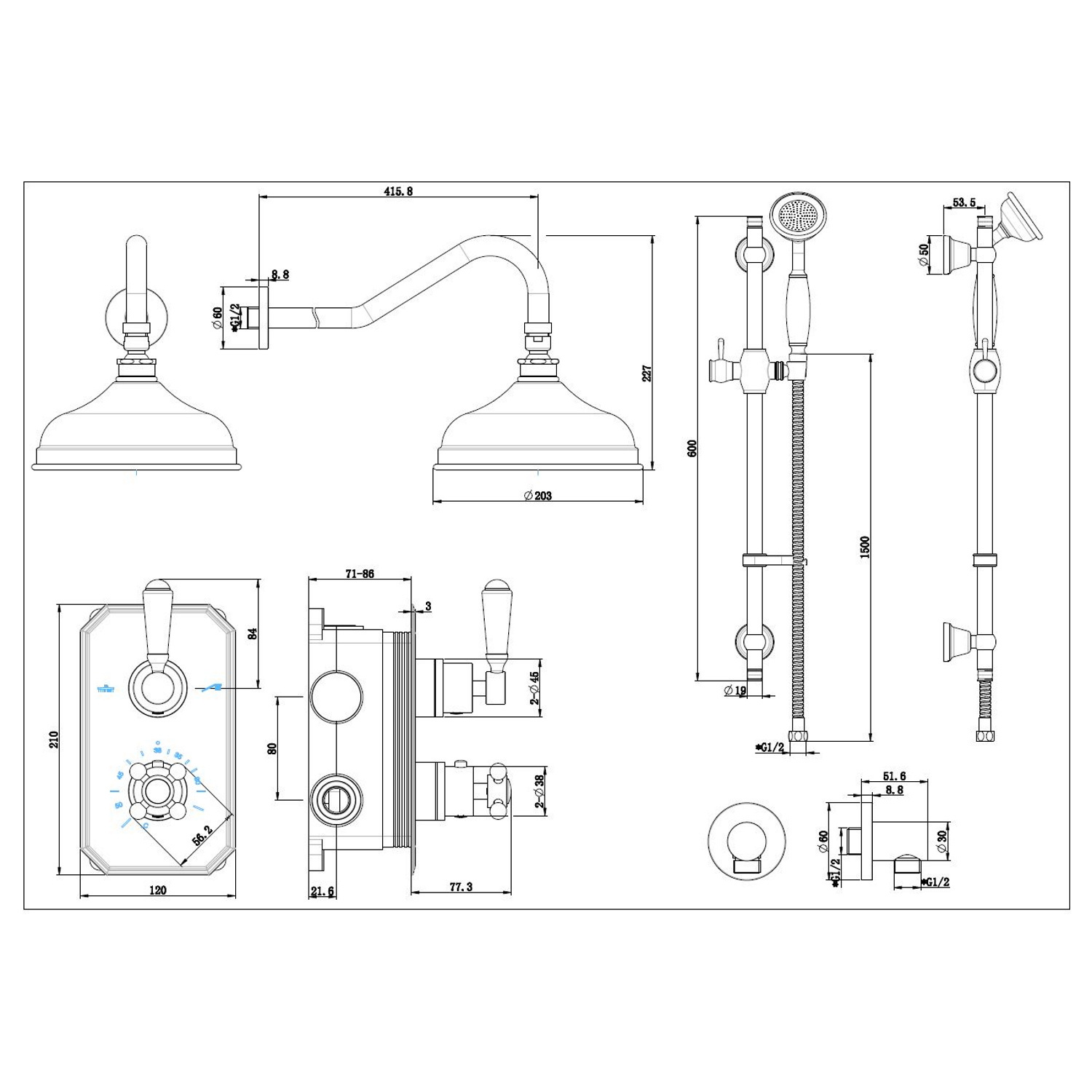 De Liberty regendoucheset is geproduceerd in een chromen kleur. De materialen zijn gemaakt van messing en de complete regendoucheset heeft een 1/2'' inch-aansluiting.