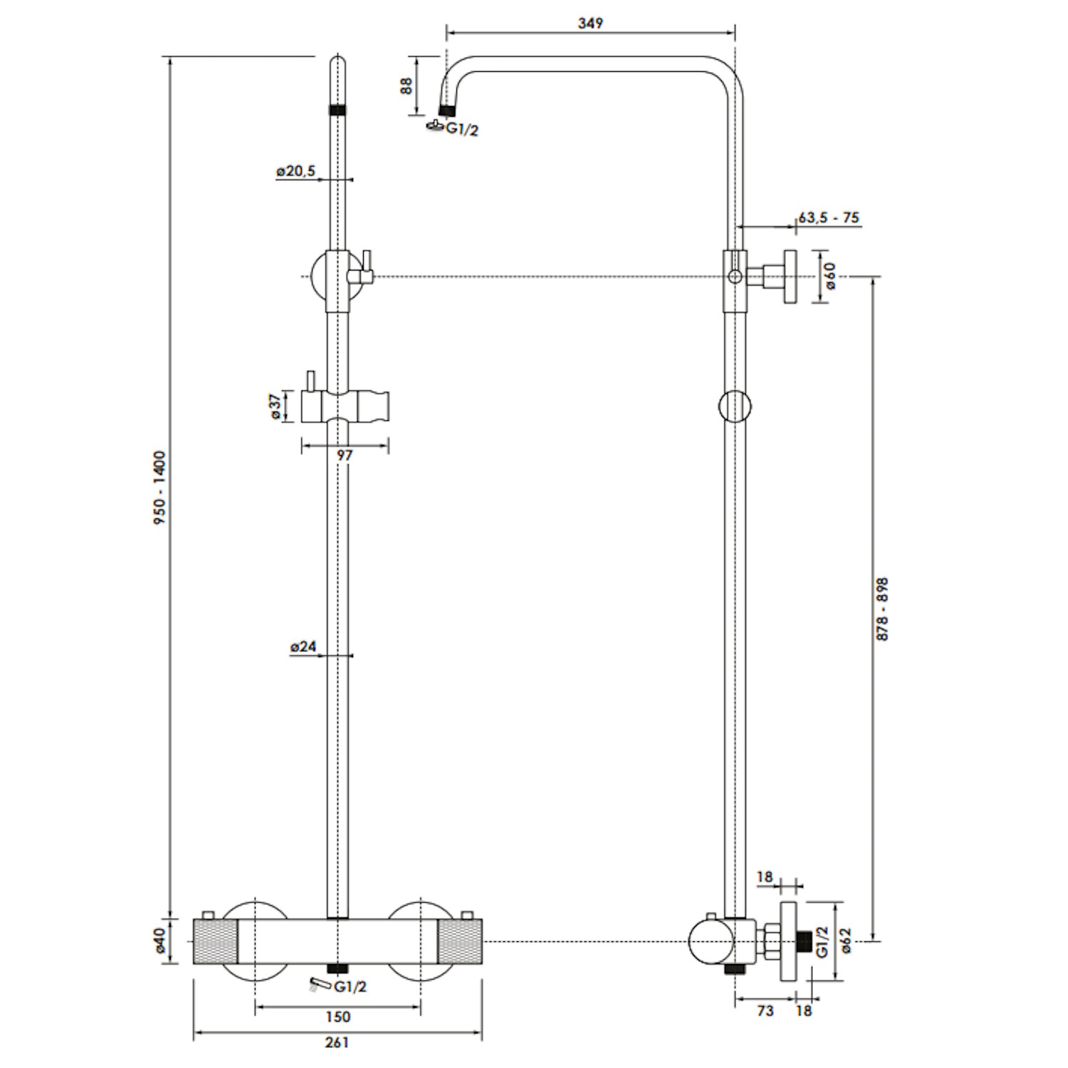 Deze set bestaat uit een complete opbouw regendoucheset met thermostaatkraan, staaf handdouche en regendouche van 30 cm. De thermostaatkraan is eenvoudig te bedienen. Met de linkerdraaiknop bepaalt u de gewenste douchestand en daarmee wisselt u tussen hoofd- en handdouche. Met de rechter draaiknop stelt u de gewenste watertemperatuur in. Deze knop is voorzien van temperatuurblokkering bij 38°C, zodat de kraan voor iedereen veilig te gebruiken is. De glijstang is verstelbaar tussen 95 en 140 cm