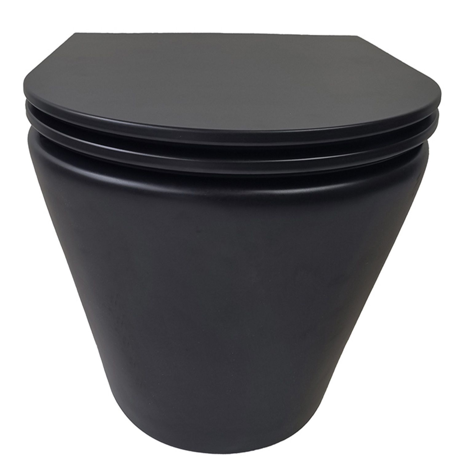 Deze rimless wandcloset is van het merk BWS en komt uit de Tornado serie. Het BWS Wandcloset Astev komt met een moderne flatline zitting. Wiesbaden staat garant voor design en kwaliteit. Het wandcloset en de toiletzitting zijn beiden mat zwart. Verder wordt de toiletpot geleverd met het Quick Release systeem. Met dit systeem kunt u de bril eenvoudig los klikken. Deze set bevat een Flatline toiletzitting softclose en quick release mat zwart en een vesta rimless wandcloset tornado flush mat zwart.