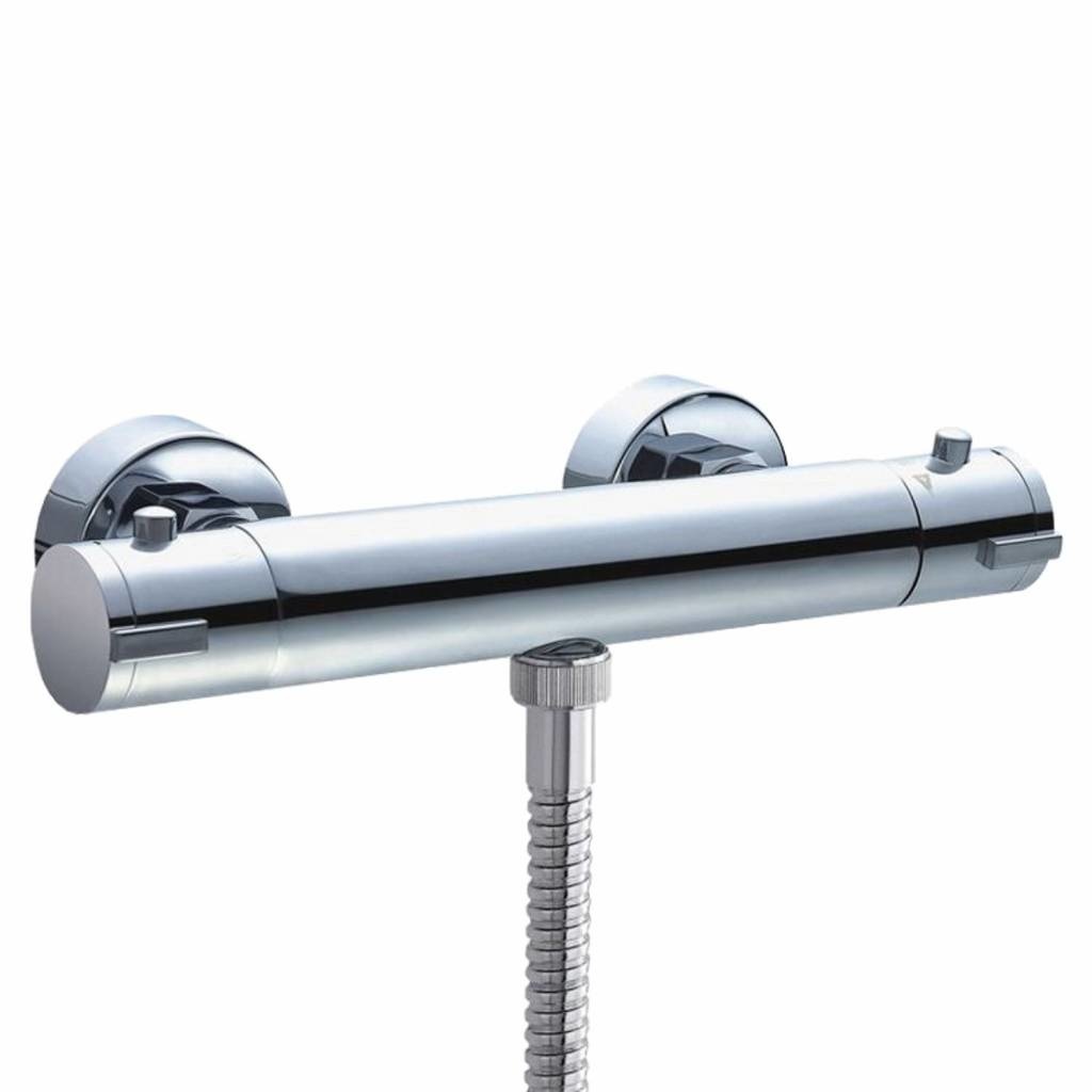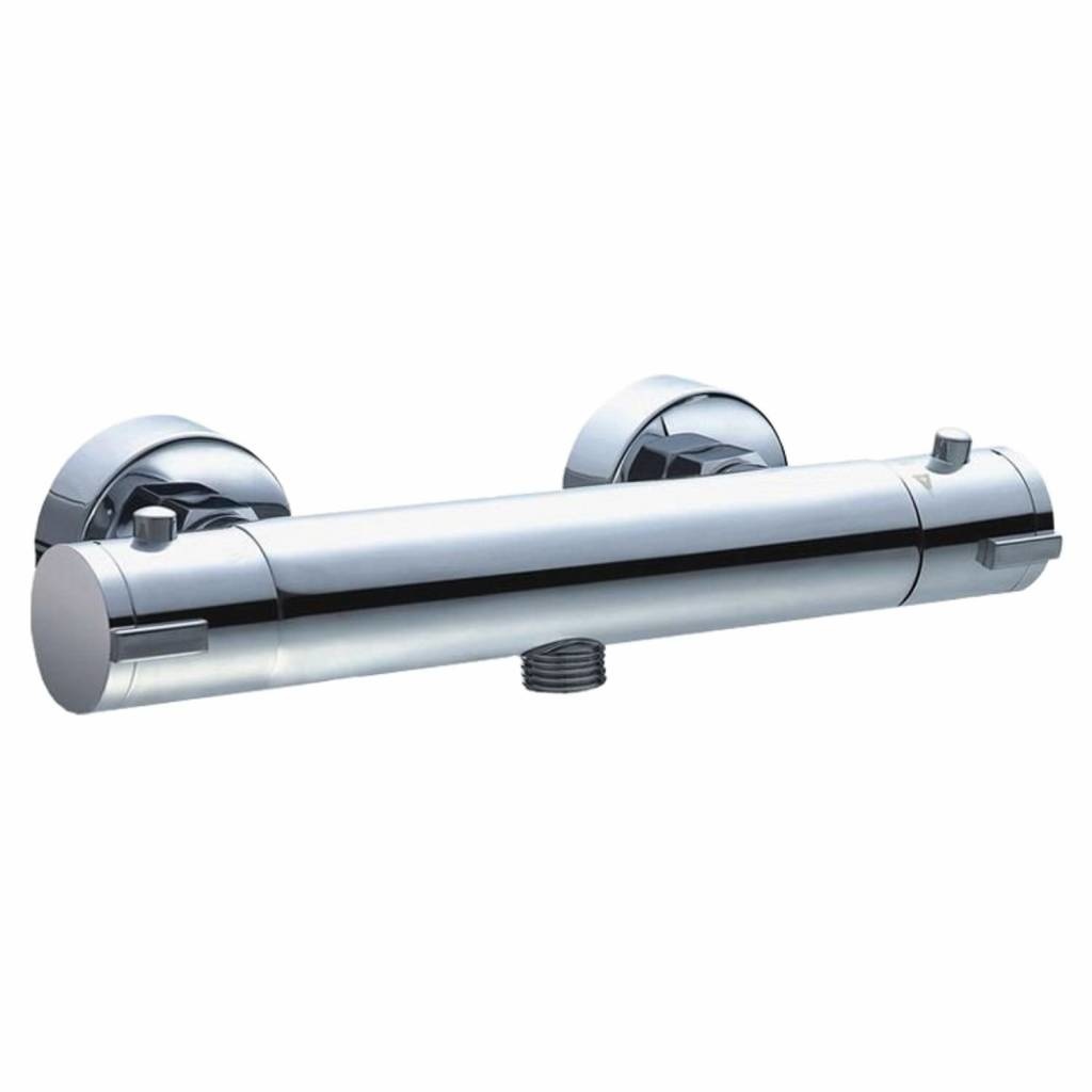 Een mooie design thermostaatkraan voor onder de douche. De chromen kraan is voorzien van een thermostaat waarmee u de temperatuur heel eenvoudig kunt bedienen. Daarnaast heeft hij een SafeStop waardoor het water niet warmer kan worden dan 38 graden. Dit is een kinderbeveiliging om verbranding te voorkomen.