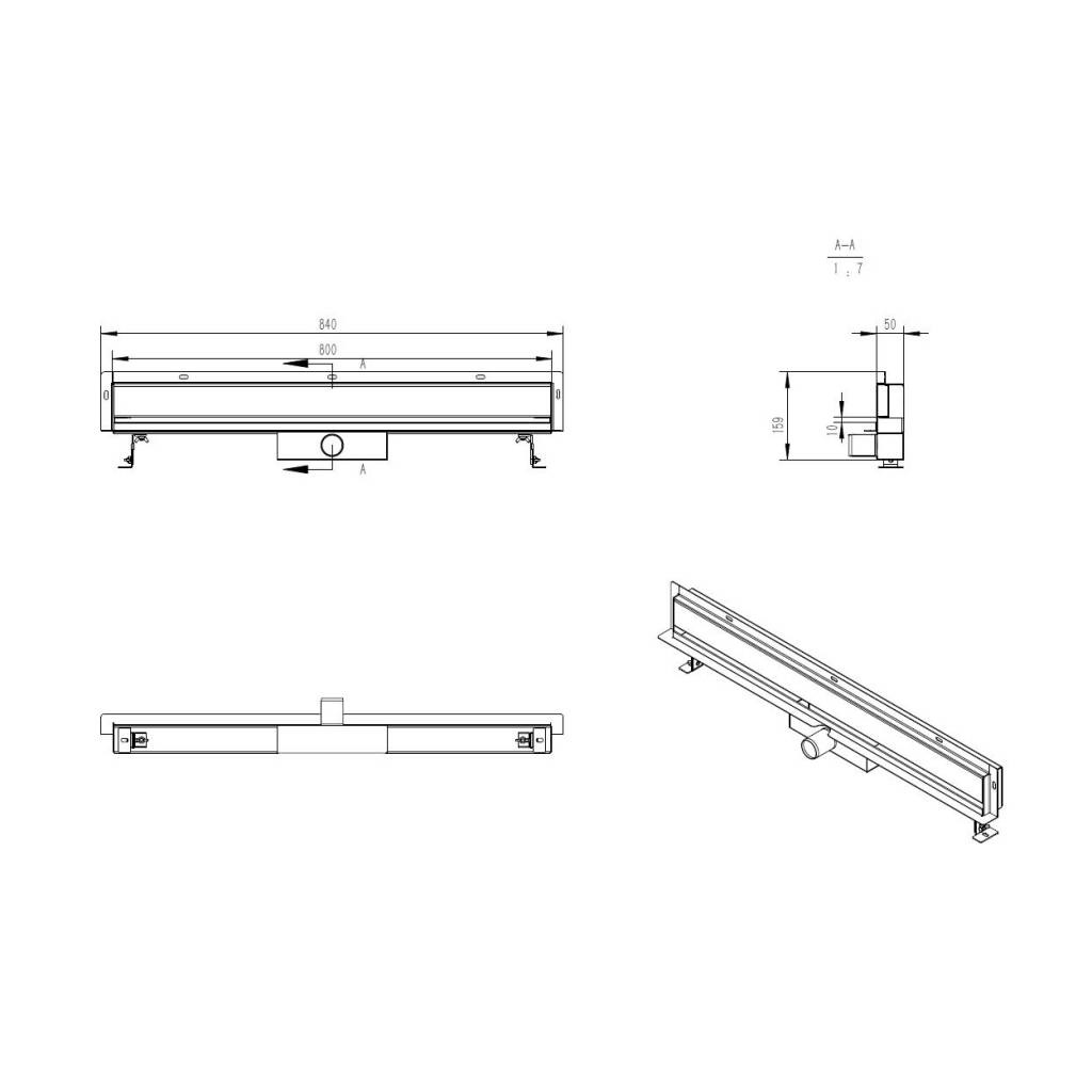 De muurinbouw douchegoot is gemaakt van RVS. Een sterk metaal en bovendien duurzaam en milieubewust. De sifon is uitneembaar. De RVS Douchegoot Flens met kunststof sifon filter 80cm Muurinbouw is 80 cm lang en 7 cm breed.