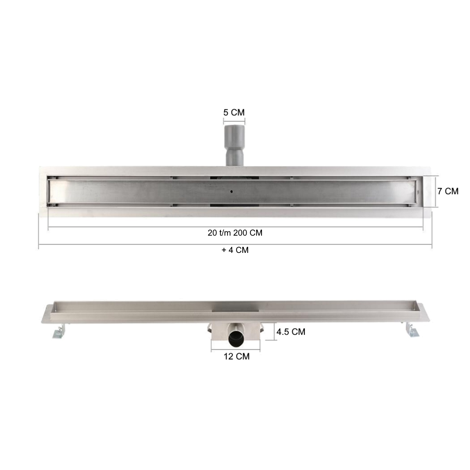 De slanke goot met tegelrooster van 7cm is volledig gemaakt van RVS. RVS is een uitstekende keuze voor een douchedrain door zijn vaste harde vorm. Het roest niet en gaat daardoor lang mee. Het voordeel van de douchegoot is dat u het sifon eruit kan halen om schoon te maken. Met een extra haarfilter kunt u de goot nog schoner houden en u voorkomt hiermee verstopping. De sifon is slechts 6.7cm diep (geïntegreerd).
