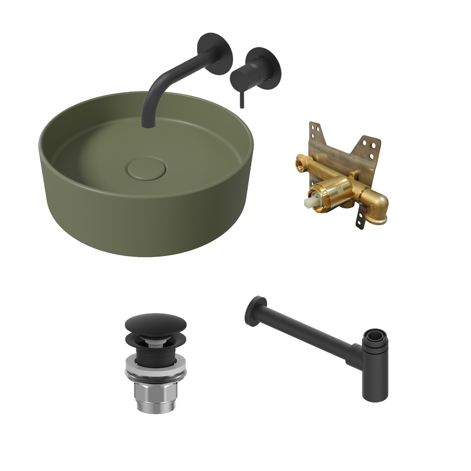 Opbouw Wastafel Salenzi Hide Circle 40x12 cm Mat Legergroen