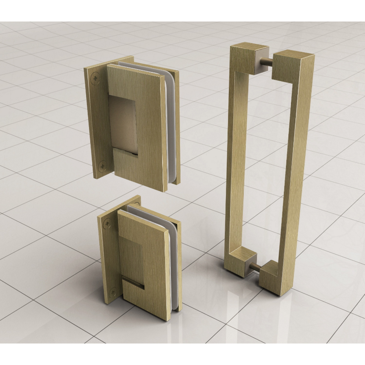 Deze scharnierset + hendel met Geborsteld Messing kunt u vervangen met de chrome onderdelen van de Nisdeur Wiesbaden Zonder Profiel.
