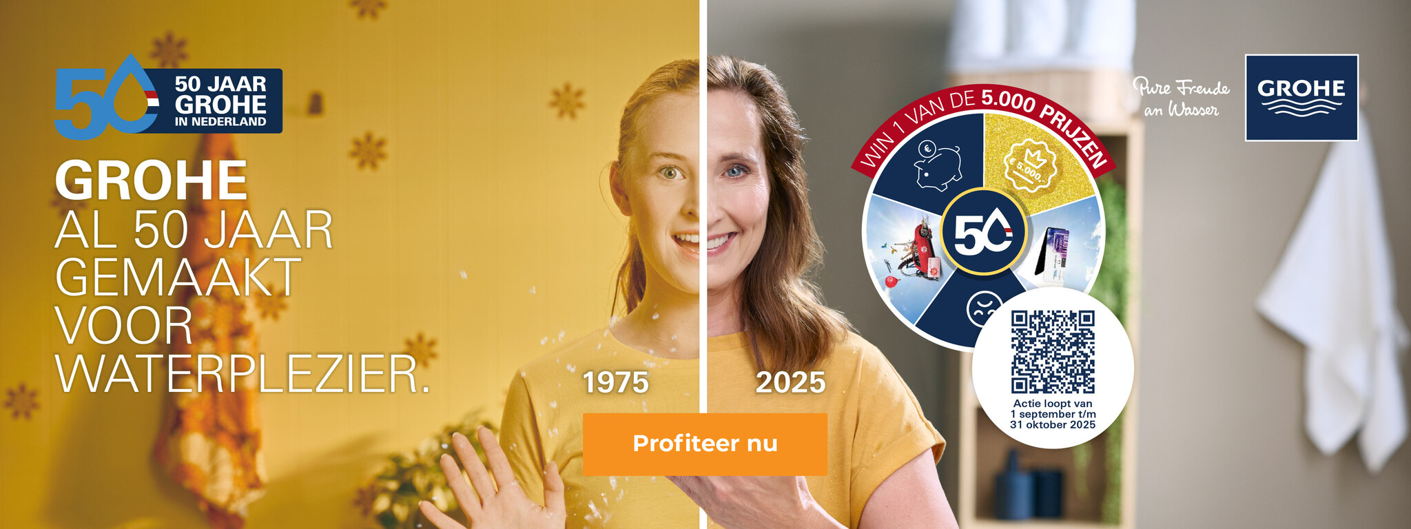 Grohe viert haar 50-jarig jubileum en trakteert! Bij aankoop van geselecteerde Grohe-producten maak jij tijdelijk kans op één van de 50 unieke prijzen, waaronder wellness-ervaringen, luxe producten en exclusieve Grohe-sets.