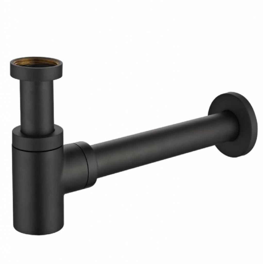 Dit lage model sifon in mat zwarte uitvoering zorgt voor een compleet andere trend dan de meeste mensen gewend zijn, met chromen sifons. Het model heeft een stankafsluiter, deze vangt geuren vanuit de afvoer en zorgt ervoor dat deze niet de put uit komen.