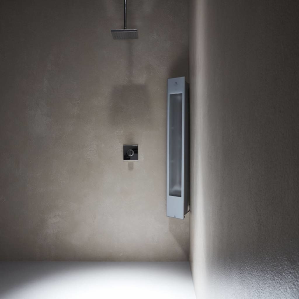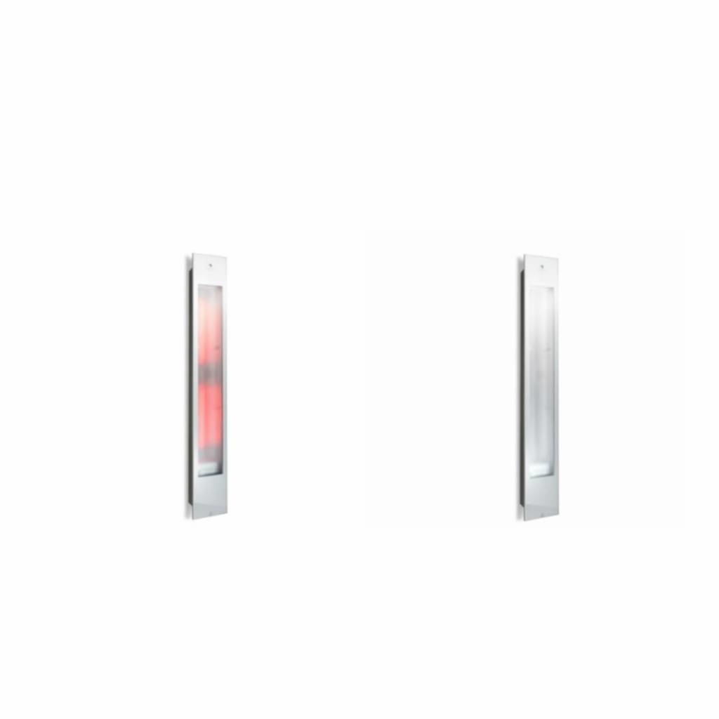 De Sunshower Solo is iets kleiner dan de Sunshower Combi en voorzien van twee infraroodlampen van elk 750W. Elegant in de hoek te plaatsen als zwevend element. Voorzien van een gezandstraalde glasplaat in een slank aluminium frame.