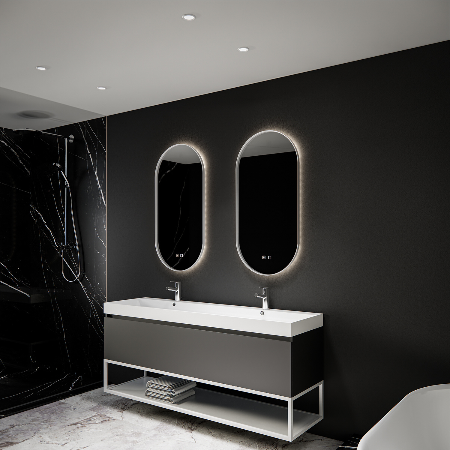 Deze ovalen spiegel met mat witte rand is van het merk Boss & Wessing en komt uit de serie Thyreos. De spiegel is voorzien van geïntegreerde spiegelverwarming, hierdoor hoeft u nooit meer de spiegel af te nemen met een handdoek na het douchen. Ook is deze prachtige spiegel voorzien van LED Verlichting rondom. Hierdoor heeft u altijd genoeg licht tijdens het make-up verwijderen of uw haar doen.