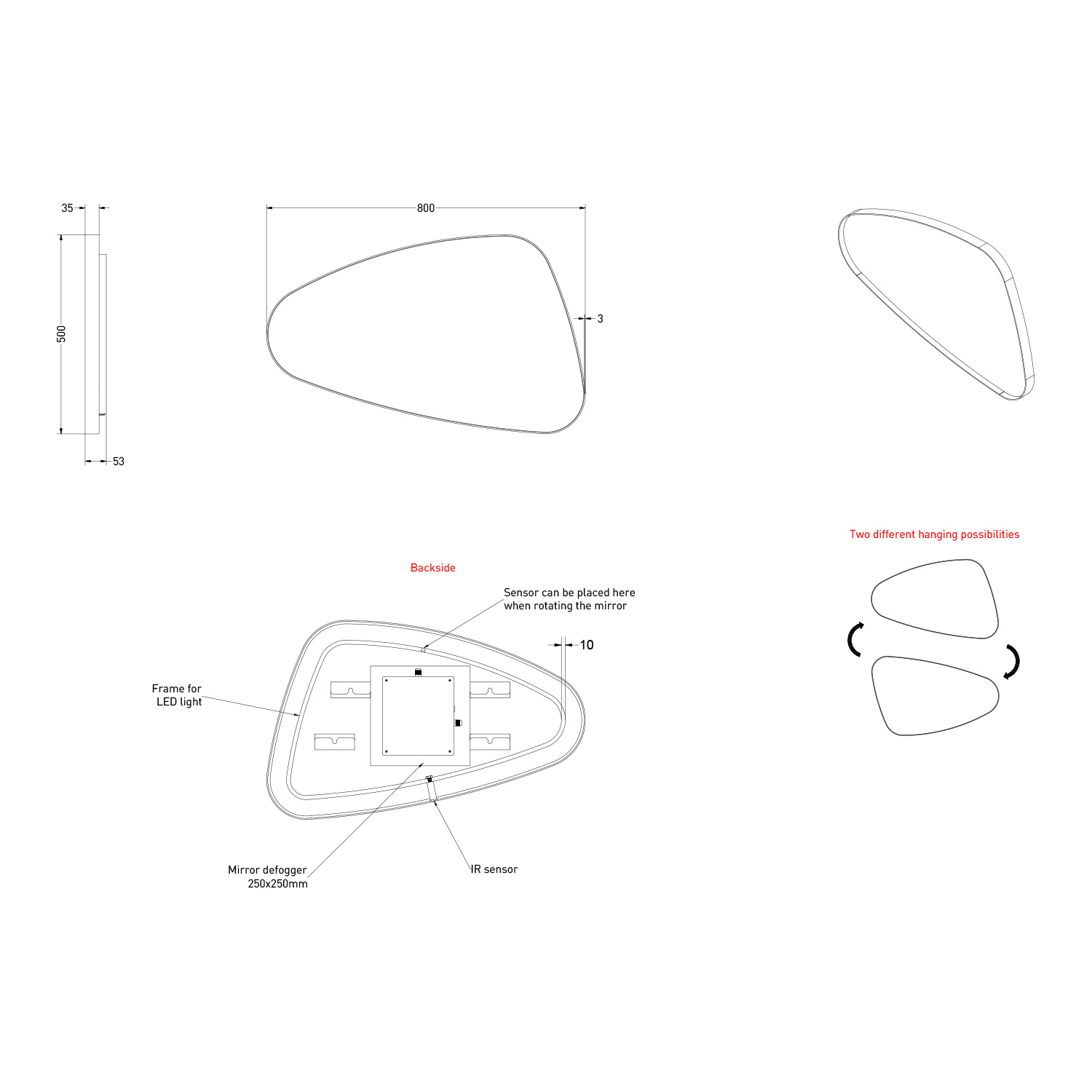 De LED verlichting veranderd van kleurtemperatuur en is dimbaar. De kleuren wisselen tussen 3000 & 6000 Kelvin. Tevens is deze prachtige organische spiegel voorzien van spiegelverwarming, op die manier hoeft u na het douchen niet te wachten om de spiegel te kunnen gebruiken. De spiegel kan aangesloten worden op de normale netstroom, wel is aan te raden om er een aparte schakelaar tussen te zetten voor verlichting en verwarming, dit ivm het doorbranden van de spiegelverwarming.