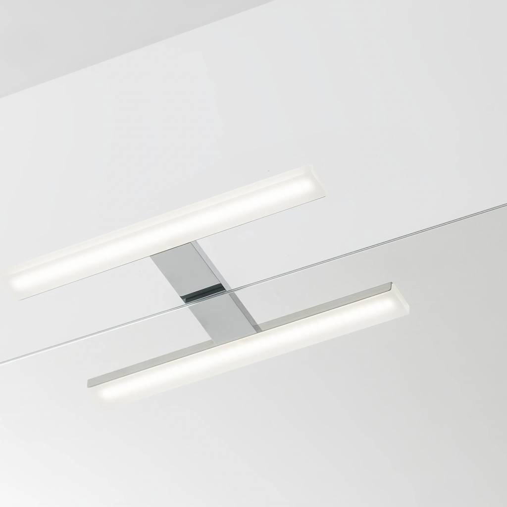 "De Tiger LED-lamp Eros is een strak vormgegeven moderne designlamp. Door de breedte van de lamp is deze uitermate geschikt om boven de wastafelspiegel te hangen. De lamp kan op 2 manieren gemonteerd worden; zowel op het meubel als op de spiegel. De lamp is uitgevoerd in de kleur chroom. De lamp is voorzien van 7,2 watt LED verlichting met geïntegreerde transformator. De lichtkleur is 4000K.