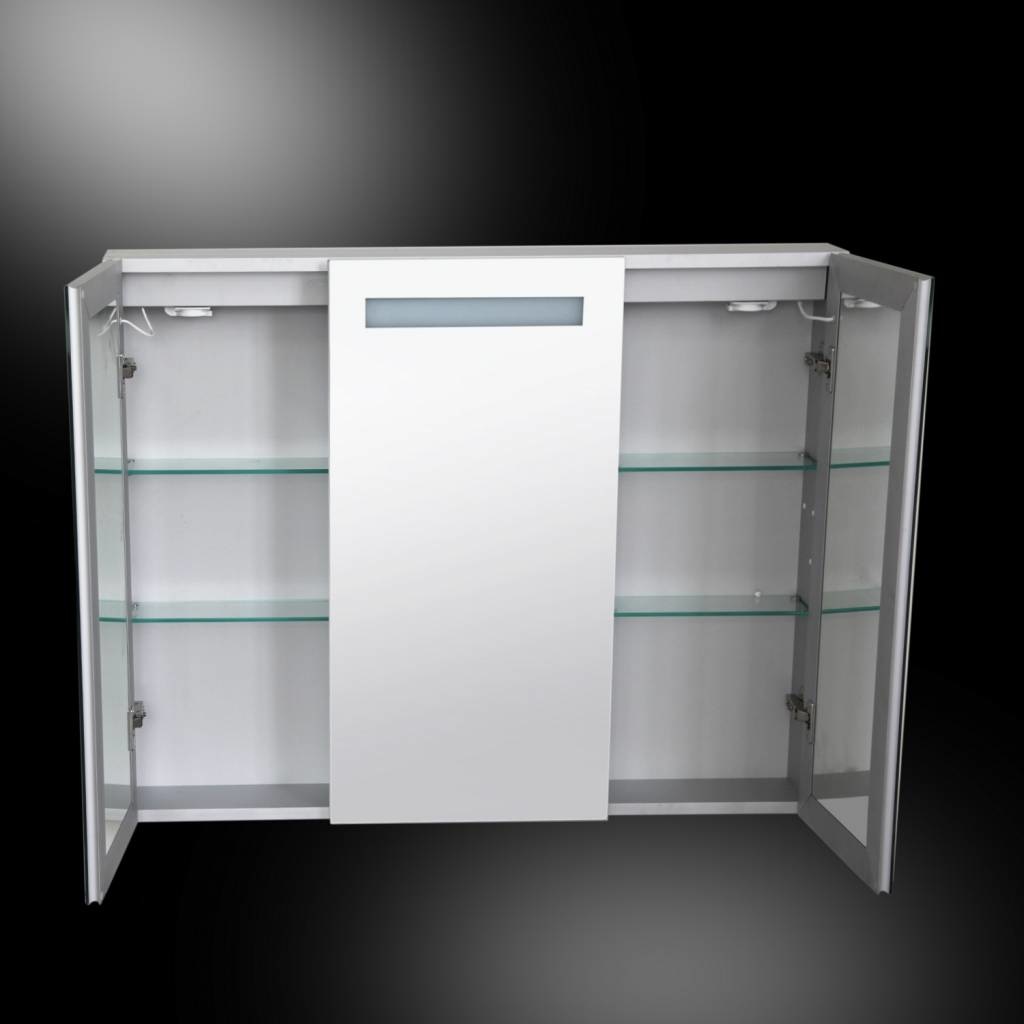 De Spiegelkast Aluma Inclusief LED verlichting 120x80cm is een mooi model spiegelkast van het merk.De spiegel is voorzien van een stopcontact en Led verlichting dat wordt bedient met een touch switch.