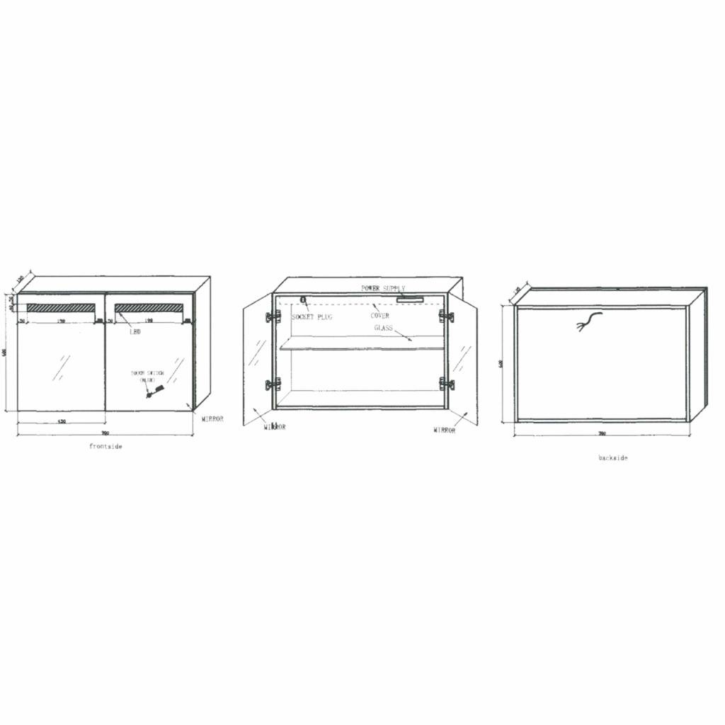 Het frame van dit exemplaar is geheel van aluminium. Dit geeft een mooi uiterlijk. De spiegel is maar 4mm dik daardoor hij niet te veel naar voren komt. De afmetingen van de spiegelkast zijn 90 cm hoog, 60 cm breed en 13. 5 cm diep zodat u genoeg persoonlijke spulletjes kunt opruimen.