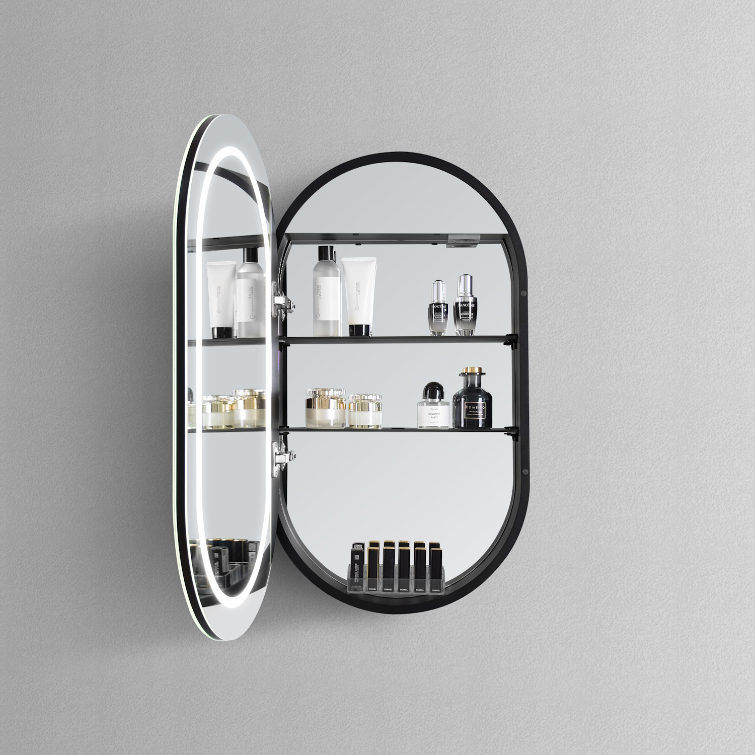 De Spiegelkast Hipp Design SPK 91000 is de perfecte aanvulling voor jouw badkamer. Deze stijlvolle ovale kast is uitgerust met 4000K neutraal helder witte verlichting, wat zorgt voor een optimale belichting tijdens je dagelijkse routine. Dankzij de ingebouwde spiegelverwarming hoef je je nooit meer zorgen te maken over een beslagen spiegel. De kast beschikt over een geaard stopcontact aan de binnenkant, ideaal voor het opladen van je elektrische apparaten. Met dubbelzijdig verlichte spiegeldeuren en softclose scharnieren biedt deze kast niet alleen functionaliteit, maar ook een vleugje luxe. De verstelbare glazen planchetten maken het eenvoudig om je badkamerartikelen netjes te organiseren. De kast is spatwaterdicht en wordt geleverd met een handige ophangset USB-Poort en 2 jaar garantie.
