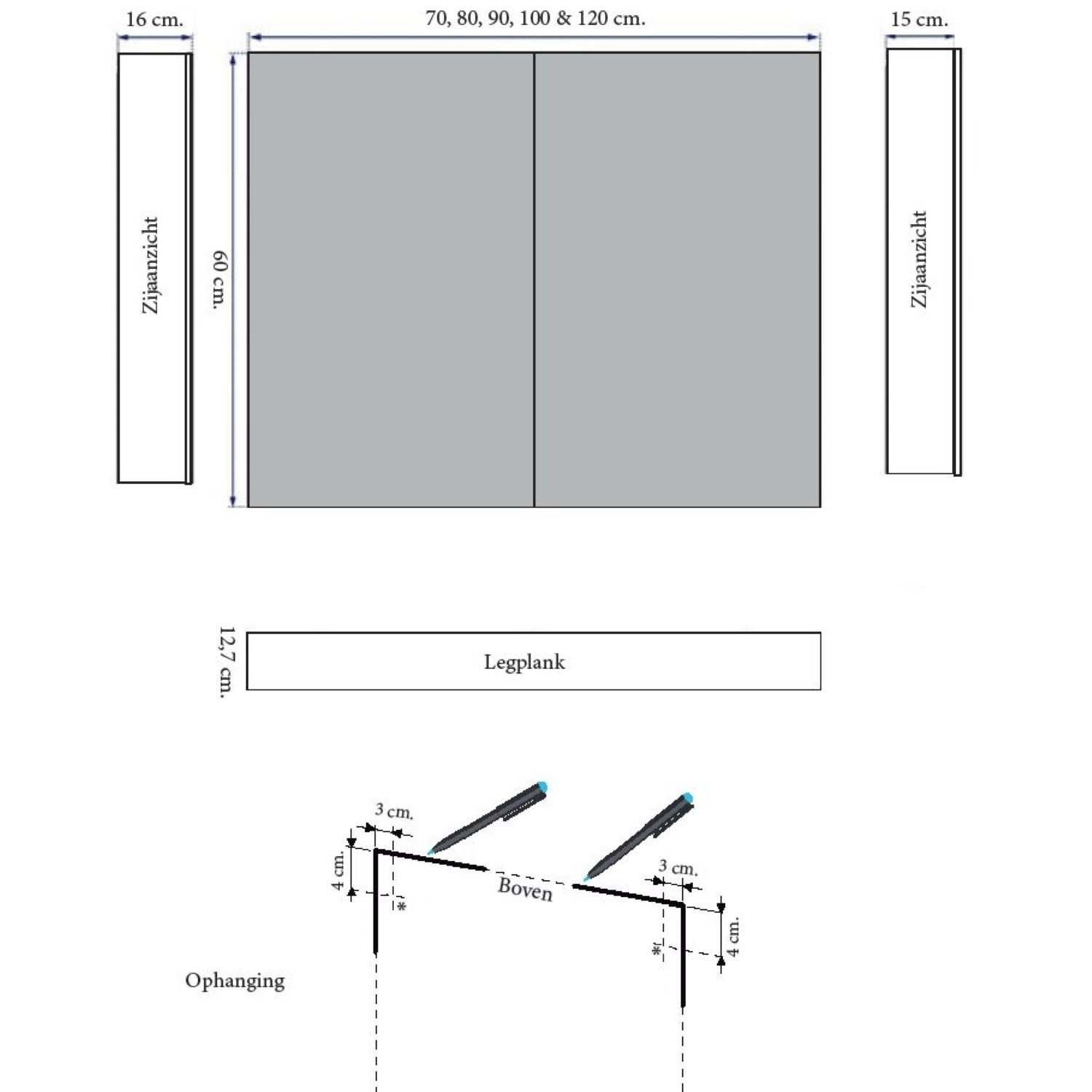 De gehele voorkant van dit product is voorzien van een spiegel. Rond het chroom vindt u een spiegeldeurgreepje en in de kolom- en/of spiegelkast kan optioneel een Sanicare Contactdoos/schakelaar geplaatst worden. Bovendien valt deze badkamerspiegel prima te combineren met diverse types Sanicare design verlichting. De badkamerspiegel kent een breedte 70 cm, een hoogte van 60 cm en een diepte van 15 cm.