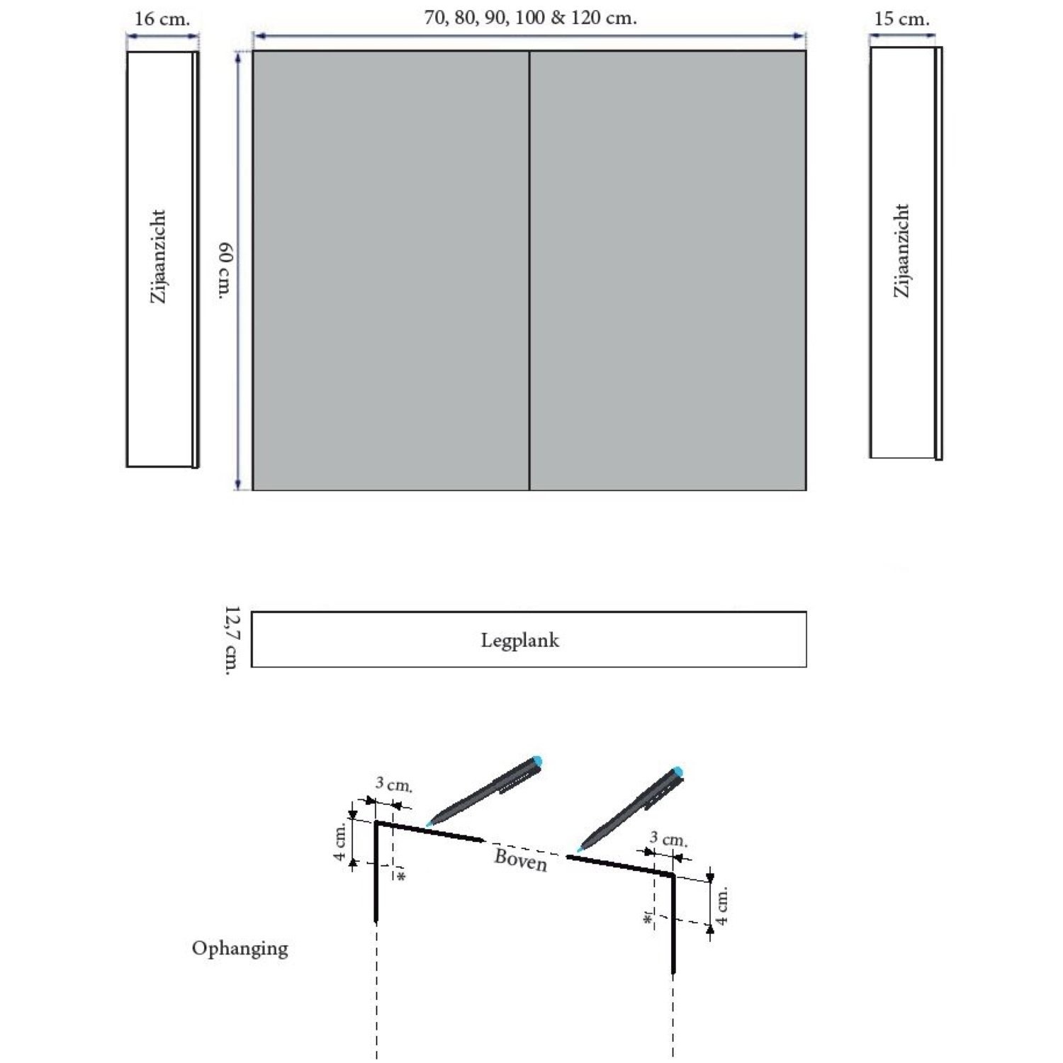 Deze badkamerspiegel is prima te combineren met diverse types Sanicare design verlichting. De badkamerspiegel kent een breedte van 120 cm, een hoogte van 60 cm en een diepte van 15 cm.