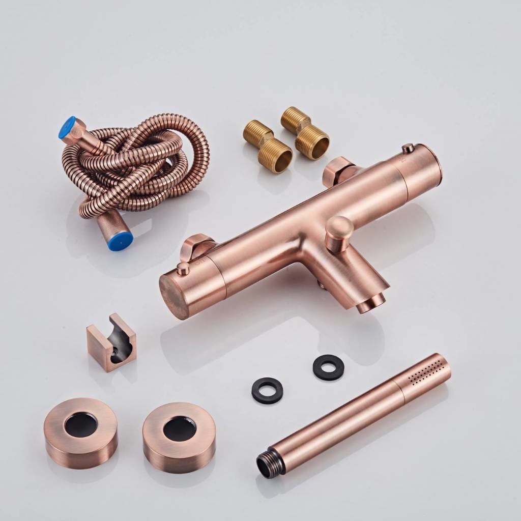 De Copper badkraan is een thermostatische kraan met een beveiliging op 38 graden.