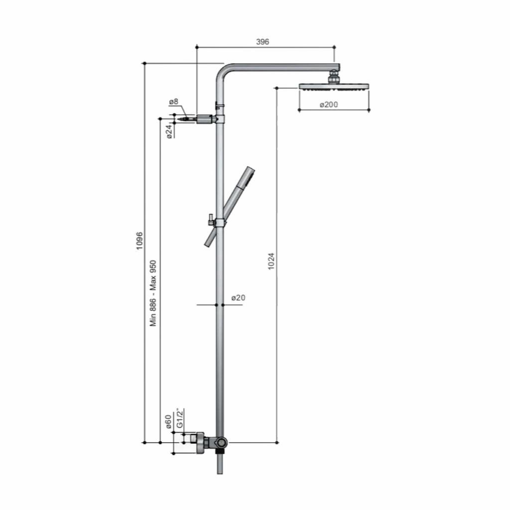 Universal thermostatische regendouche set van Hotbath. Deze set bestaat uit een staaf handdouche, een hoofddouche, een douchestortstang en een opbouw kraan.
