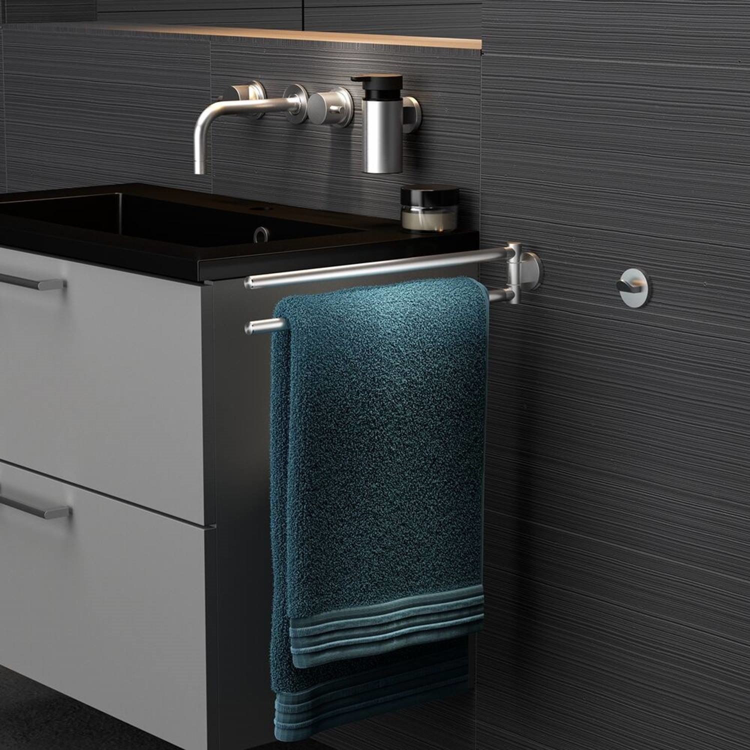 Het 2-armige handdoekrek uit de Tiger Noon serie is uitgevoerd in de kleur RVS geborsteld. De beweegbare armen bieden plaats aan twee handdoeken en zorgen voor een optimale invulling van de ruimte rondom je wastafel. Monteerbaar door middel van blinde montage, na montage geen bevestigingsmaterialen zichtbaar. Bevestigingsmaterialen worden meegeleverd en bestaan uit RVS schroeven en FIscher pluggen. De afmeting van het handdoekenrek is 8x5x45 cm.