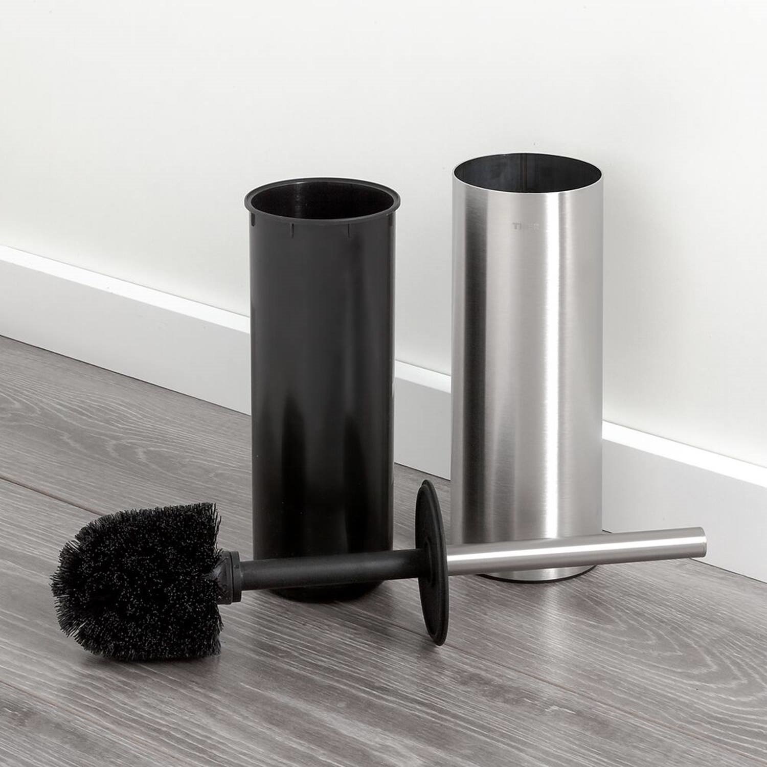 De Tiger Noon toiletborstel met houder wordt geleverd in de kleur RVS geborsteld en biedt een optimaal gebruikersgemak. Zeker wanneer het om hygiëne gaat, is het belangrijk dat het goed gebeurt. De borstelpot is over de hele lengte voorzien van kunststof materiaal, en kan goed afgesloten worden met de flexibele deksel die aan de toiletborstel zit. De borstelhouder heeft een afmeting van 9x9x38 cm, en weegt 805 gram. De Noon serie uit de premium collectie van Tiger staat bekend als luxe serie waar kwaliteit en functionaliteit moeiteloos samen gaan.