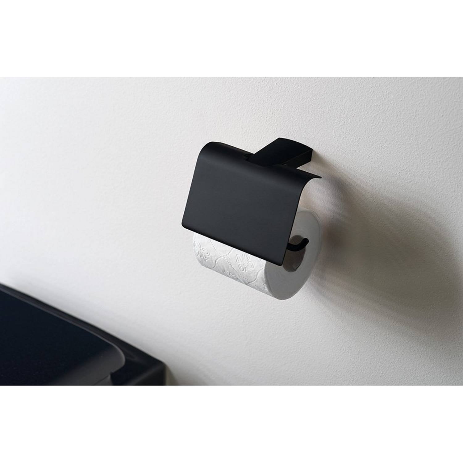 Toiletrolhouder Sapho Zen Black 13.6x9.9 cm met Klep Zwart