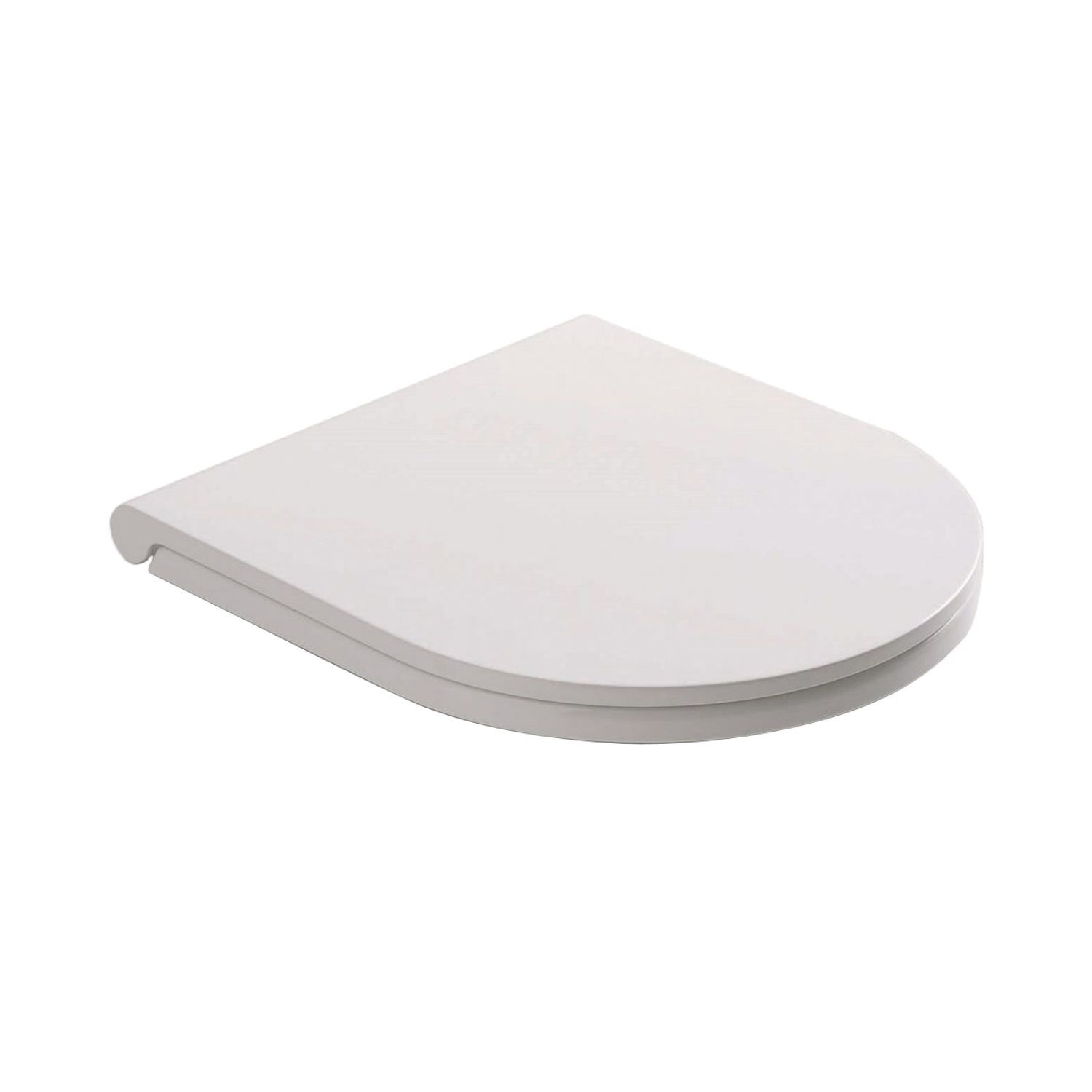 Een mooie softclose zitting voor de Luca Sanitair wandcloset Forty 3. De zitting heeft softclose. Zowel de zitting als de deksel zullen niet omlaag vallen als u ze dicht wilt doen. De systeem zorgt er voor dat de onderdelen zachtjes naar beneden zullen dalen om te voorkomen dat er kleine vingers tussen komen. Het hard dicht klappen is verleden tijd dus kans op scheurtjes of een hoop herrie is niet meer aan de orde.