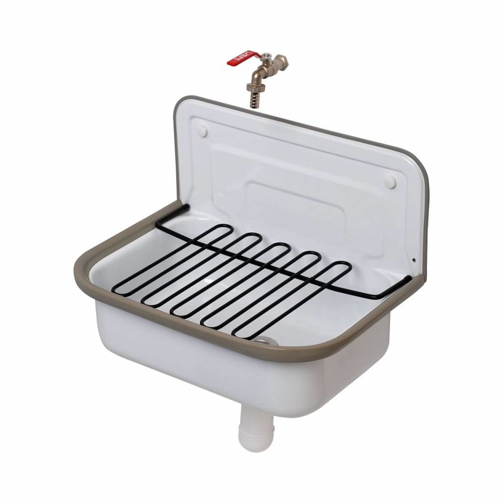 Een complete uitstrotgootsteen voor in de garage of bijkeuken! Compleet geleverd met gootsteen, emmerrooster, sifon, chromen kraan en bevestigingsmateriaal.