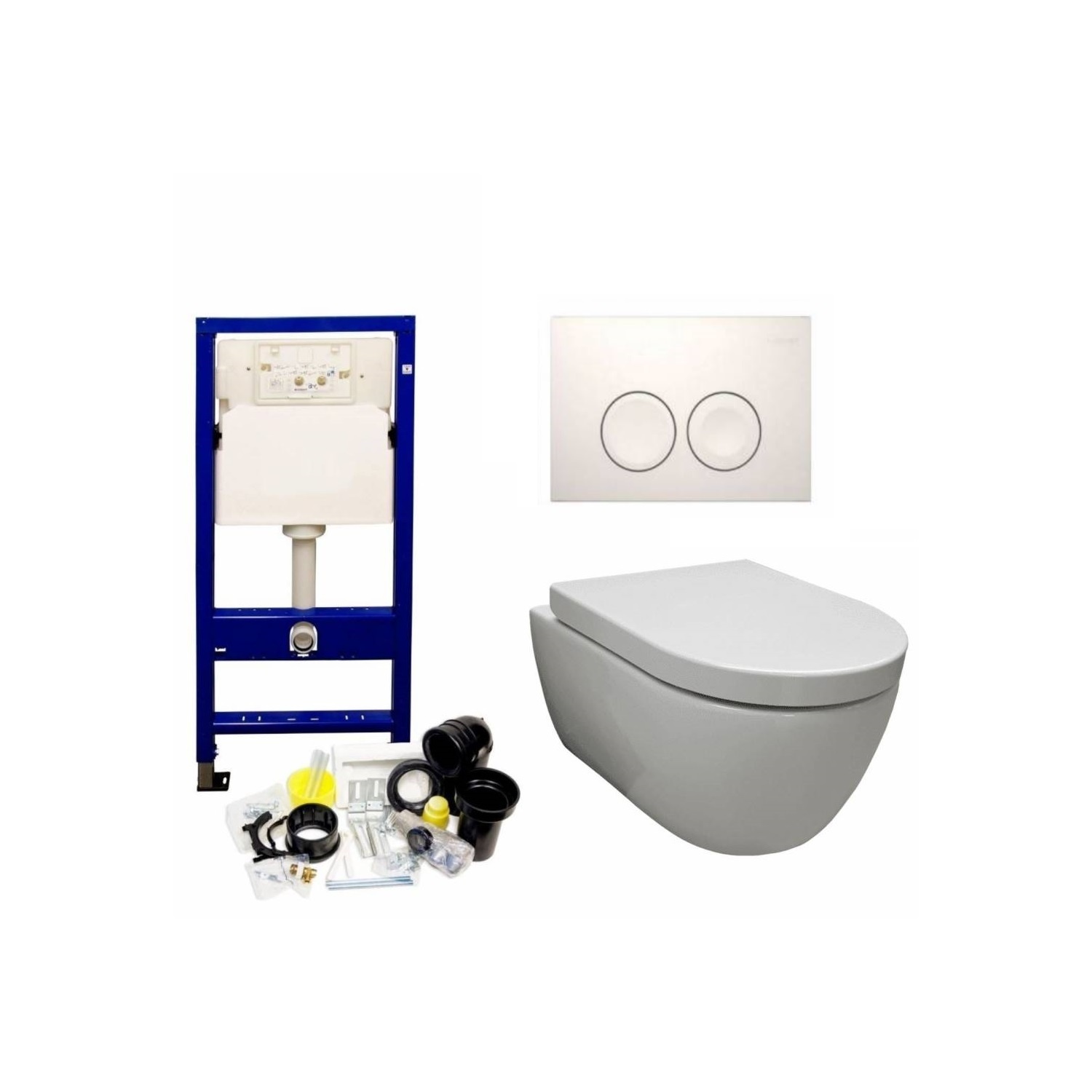 Bestel de Geberit UP100 Toiletset 08 Aqua Royal EasyFlush Rimfree 48cm compact met Delta drukplaat nu bij sanitairwinkel Megadump.