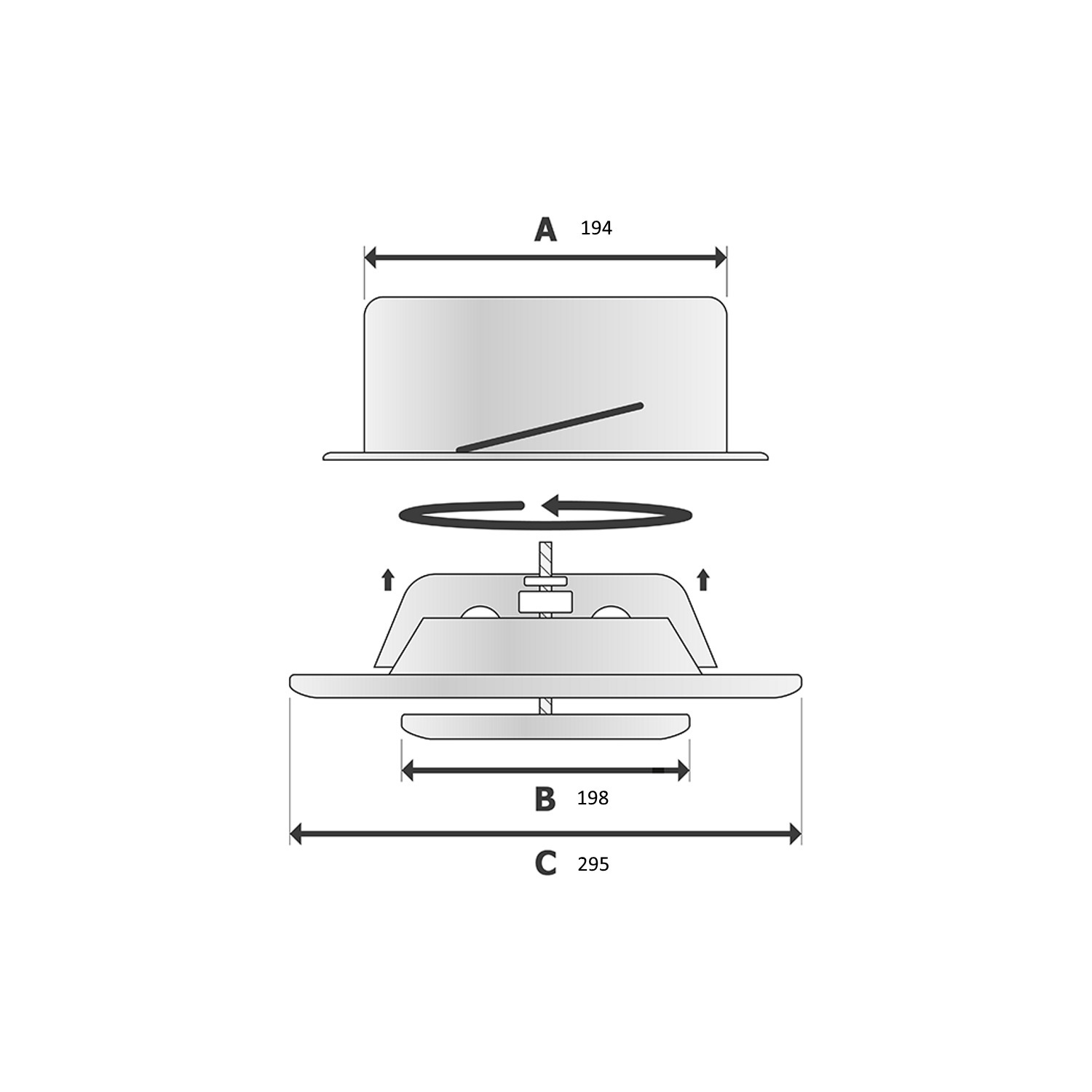 Dit toeen afvoerrooster is een rond model met een geborstelde RVS afwerking. Het bevat stalen klemveren, een aansluitbuis en een flexibele slang met een diameter van 200mm. De conus is instelbaar, zodat de toeen afvoer van de hoeveelheid lucht geregeld kan worden. De conus kan met een borgmoer vastgezet worden.