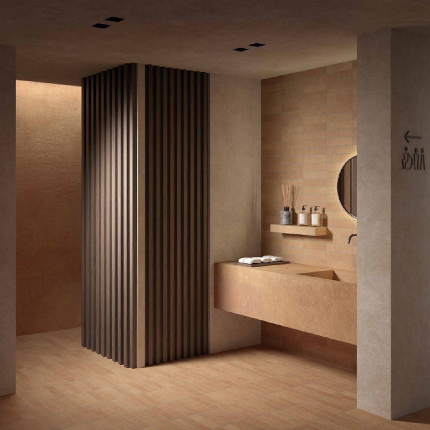 De prachtige serie 'Terra Crea' van Kronos is gebaseerd op het materiaal klei. Dit zie je terug in de texturen en de kleuren. De kleuren zijn heel natuurlijk en er wordt veel gebruik gemaakt van aardse tinten. De tegels zijn echter gewoon van porcellanato. Dit is erg onderhoudsvriendelijk. Er hecht weinig vuil aan en is gemakkelijk af te nemen met een doekje. De tegel heeft een anti-slipwaarde van R11 en is daarmee zeer geschikt voor in de badkamer. Ook is hij mooi om toe te passen in de keuken of woonkamer bijvoorbeeld. De Mattone heeft een warme bruintint.