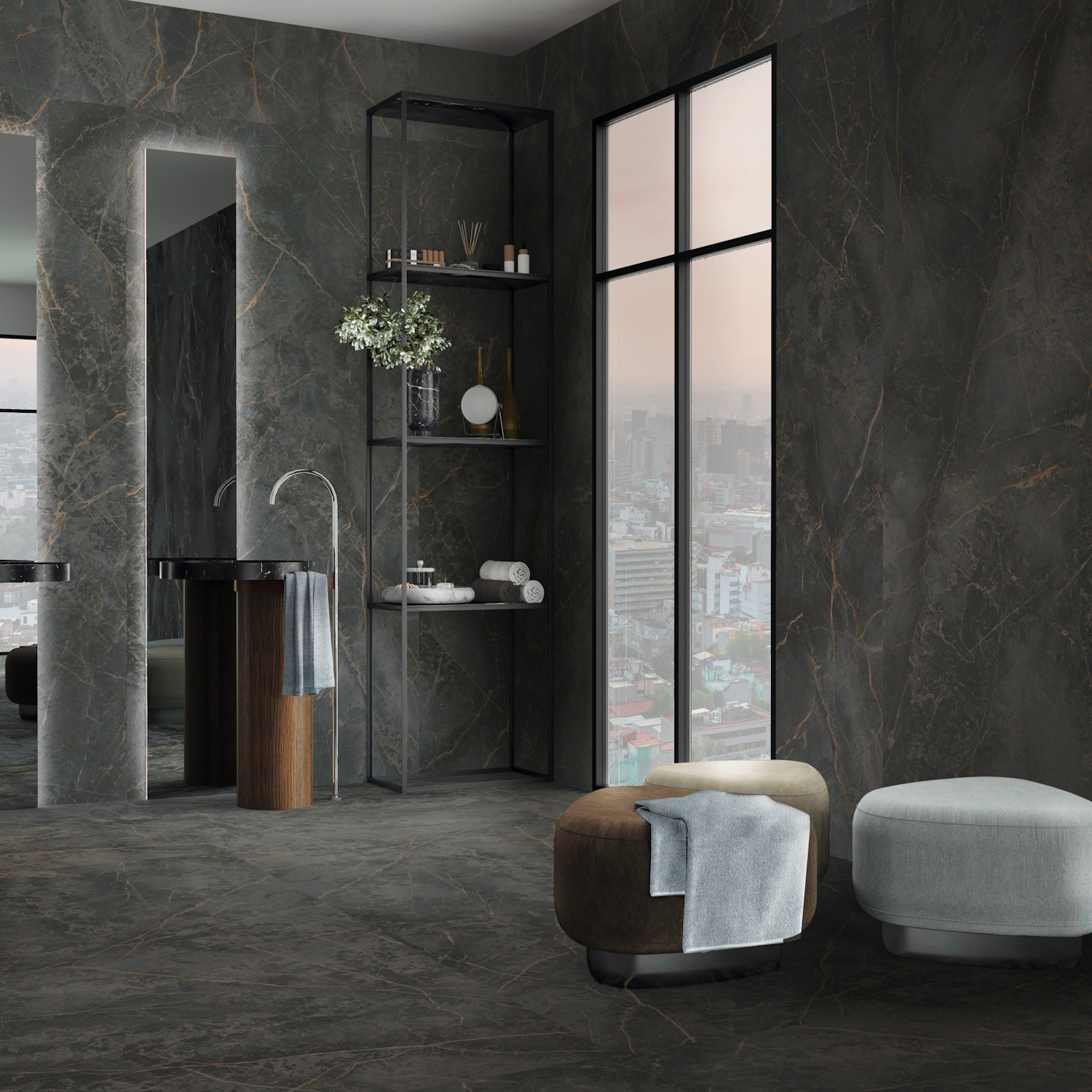 Deze vloertegel is van het merk Etile, de tegel komt uit de serie Manhattan en hij heeft een afmeting van 120 x 260 cm. De tegel is gemaakt van porcellanato met een dikte van 6 mm met een grijze kleur. Deze kleur heeft de naam Dark met een Natural afwerking. De natural afwerking is een matte afwerking.